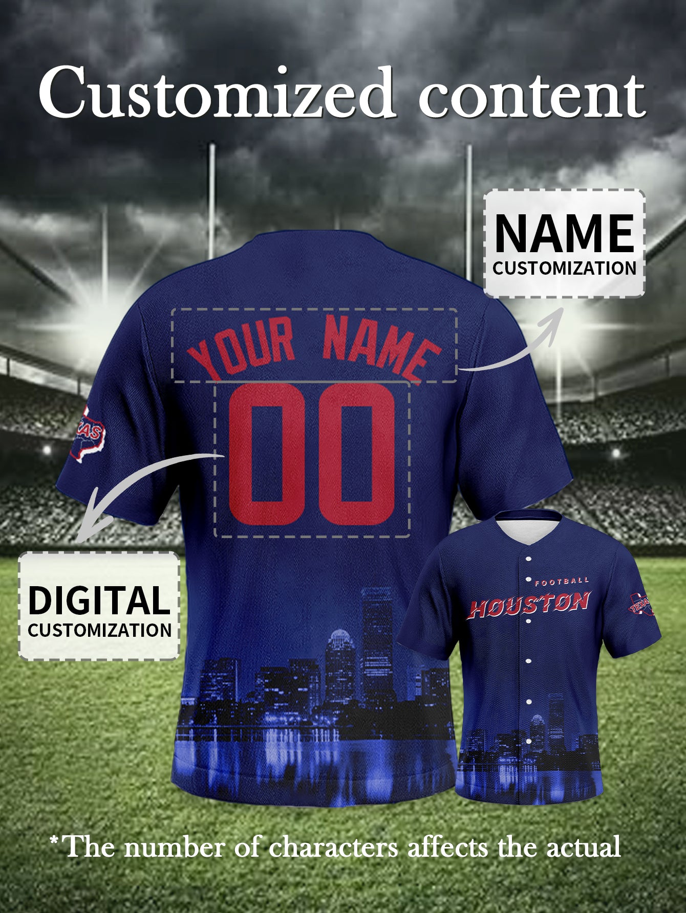 Houston Texans Deep Blue Baseball Jersey - Custom Player Jersey
