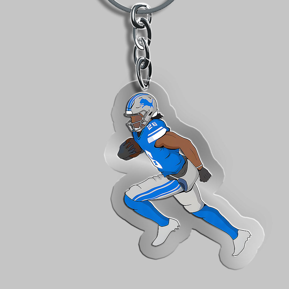 Jahmyr Gibbs Running Pose Keychain Touchdown Celebration Detroit Football Lion Football Fans Bag Decor