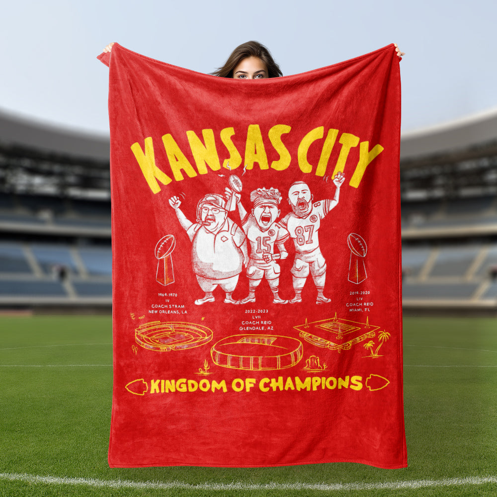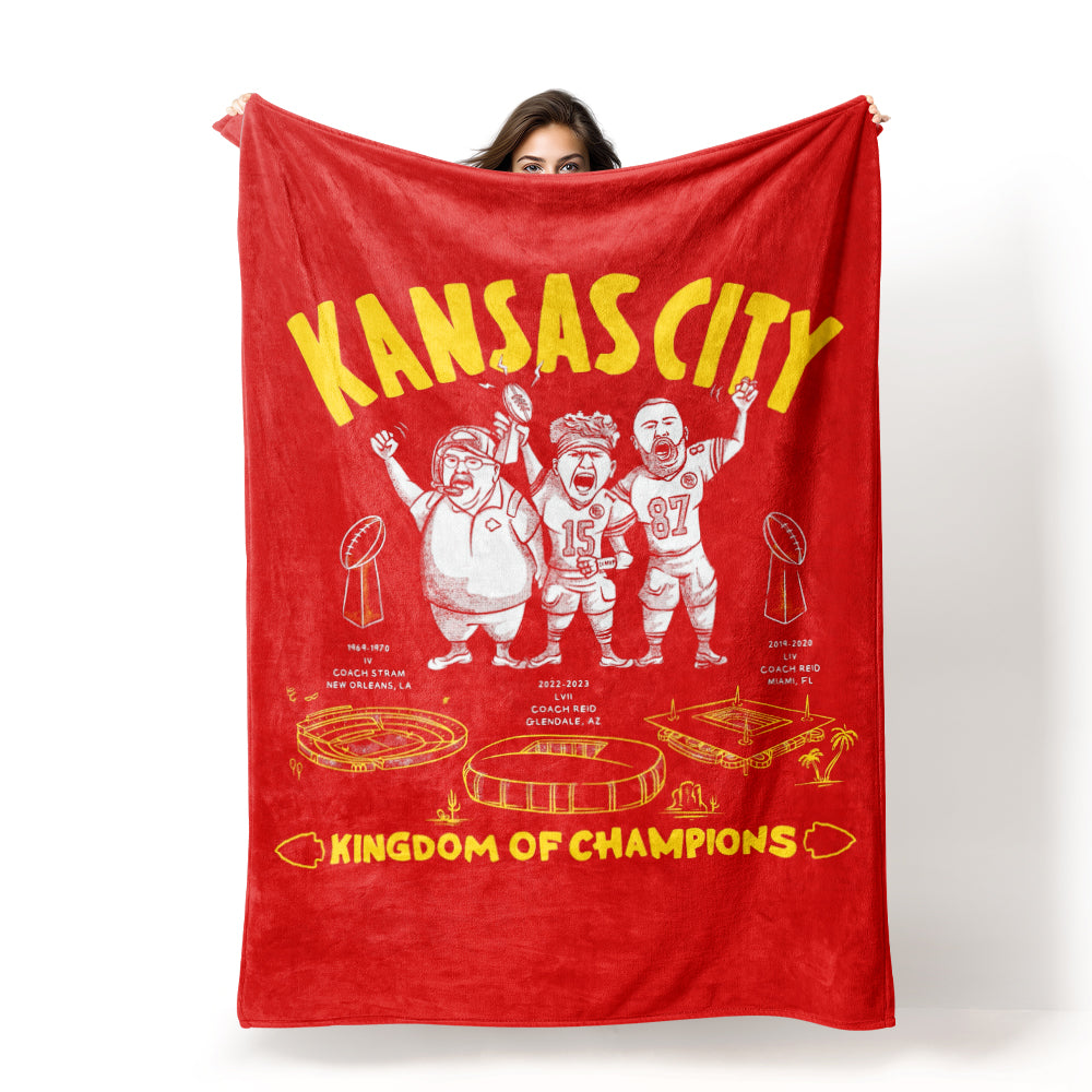Kansas City Kingdom of Champions Cartoon Print Blanket Kansas City Fans Commemorative Gift