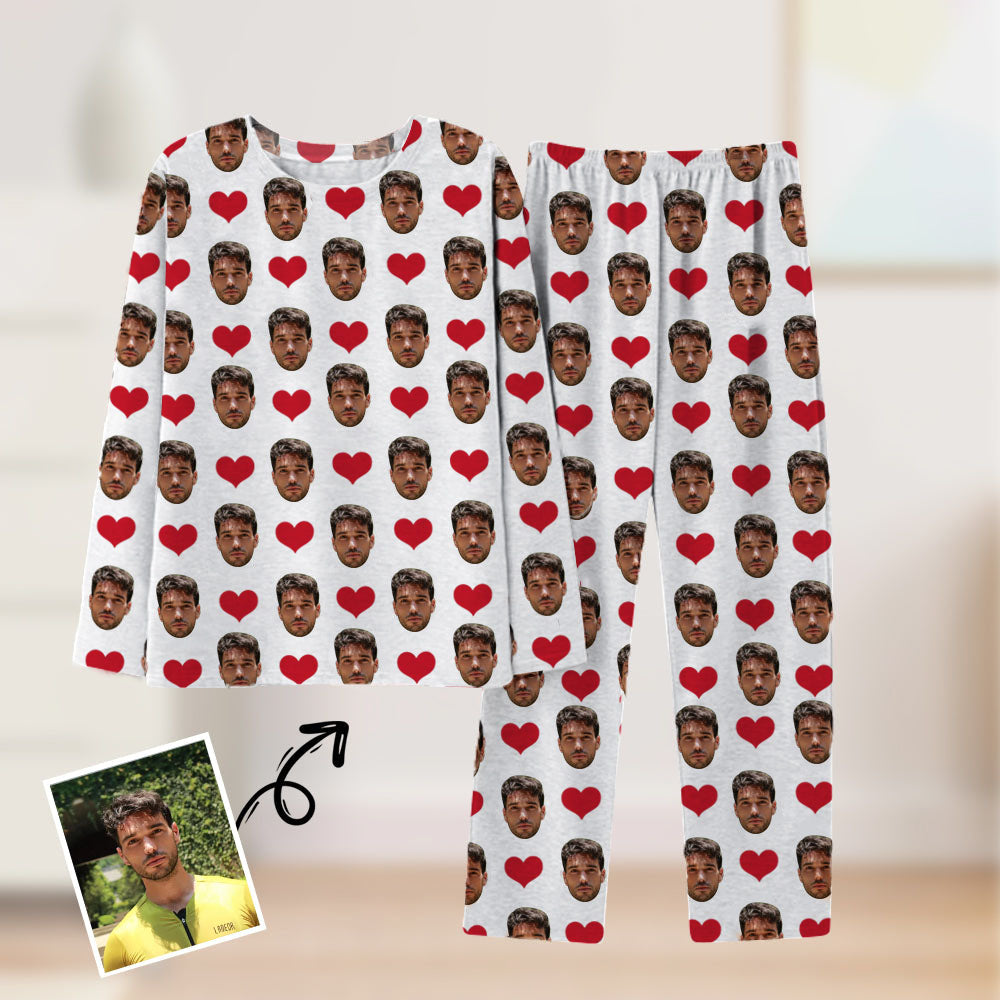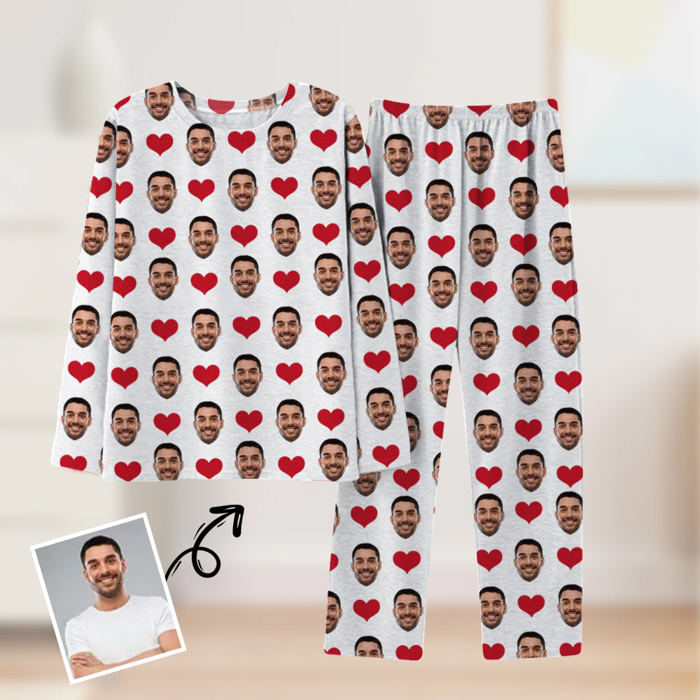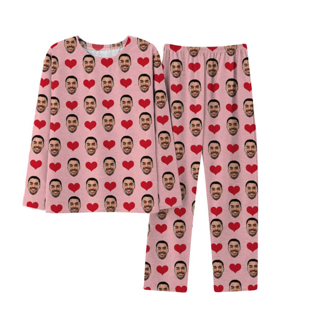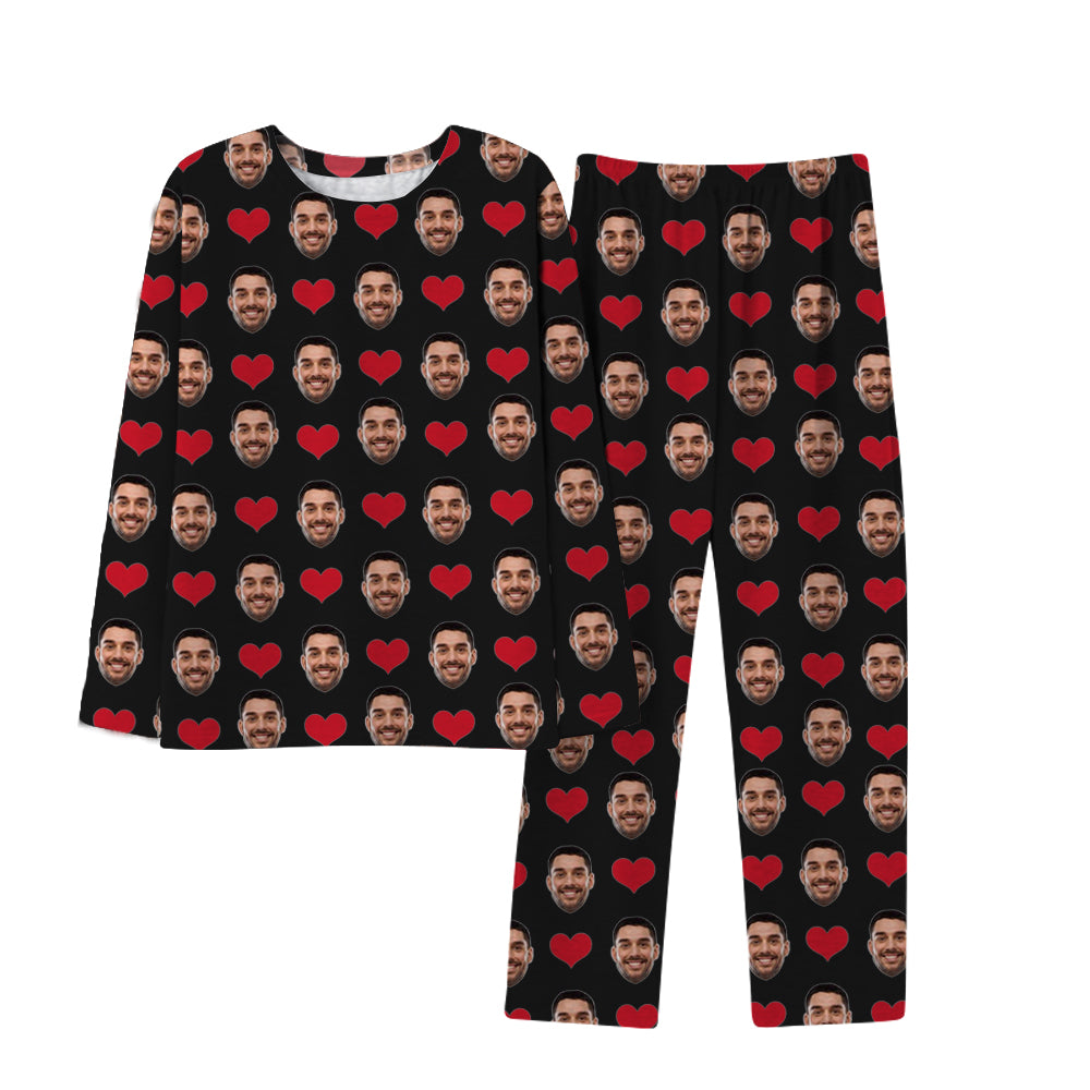 4FunGift® Men's and Women's Pajamas Long-Sleeved Suit Custom Love Couple Pajamas