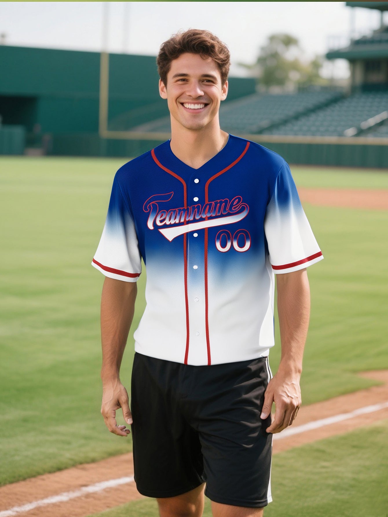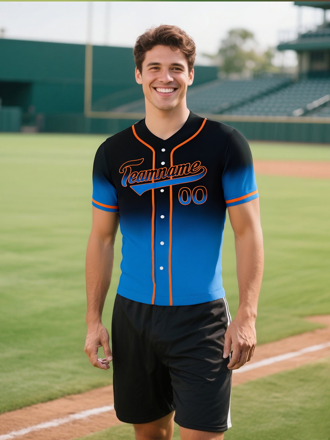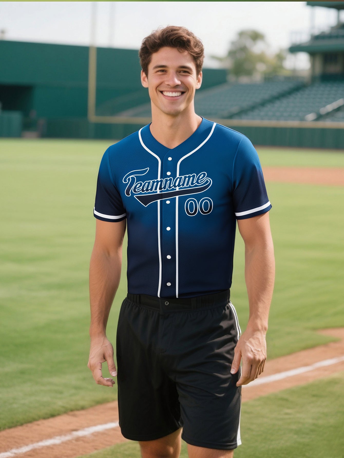 Men's Custom Baseball Jersey - Ocean Depth Gradient Printing Custom Name & Number