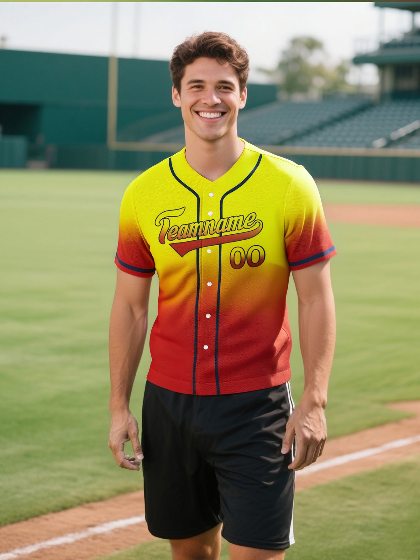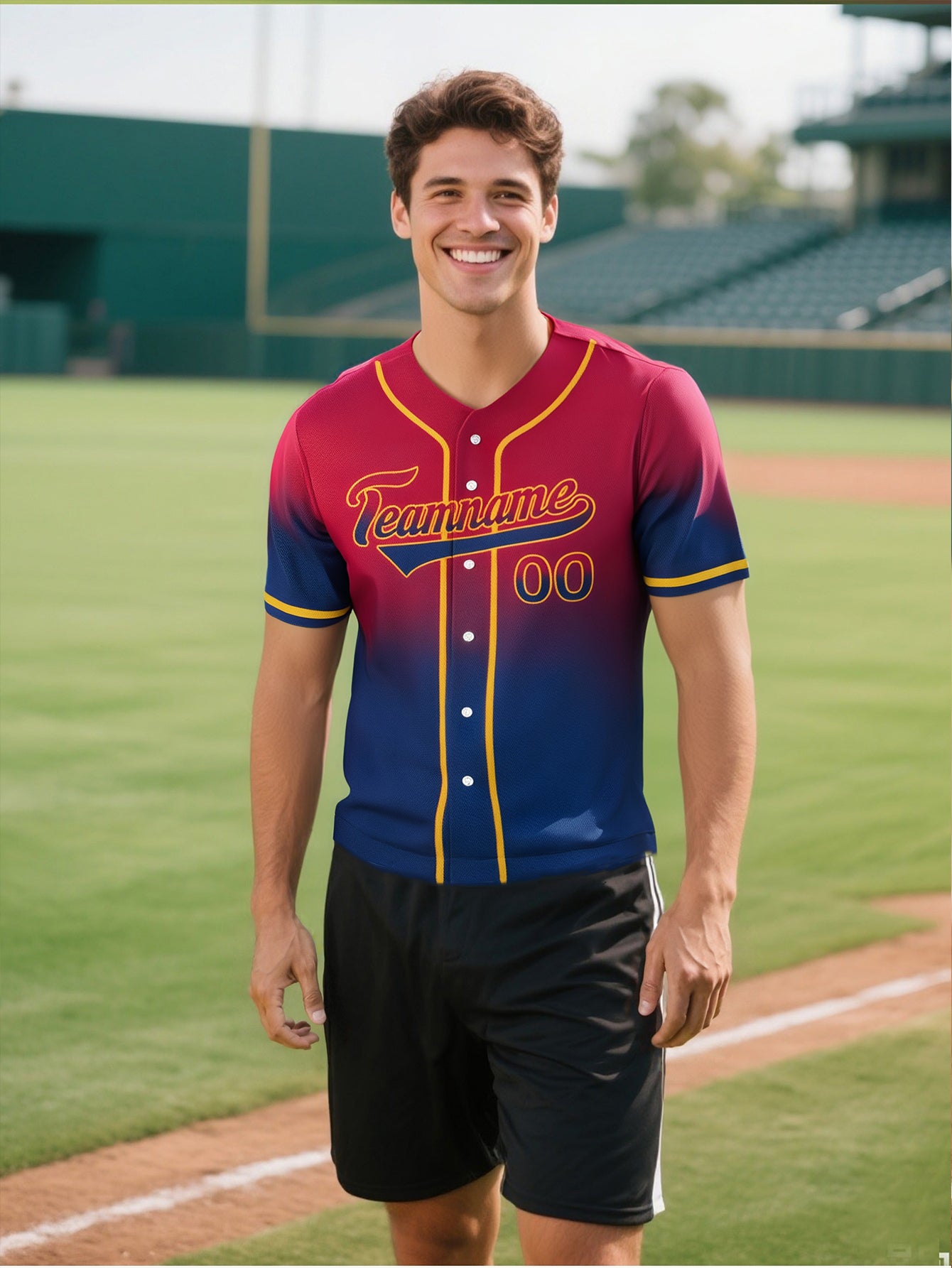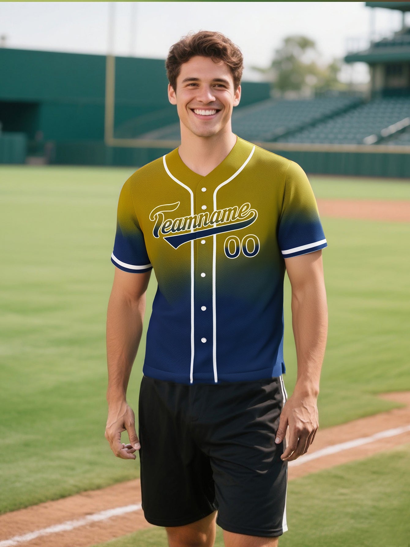 Men's Custom Baseball Jersey - Ocean Depth Gradient Printing Custom Name & Number