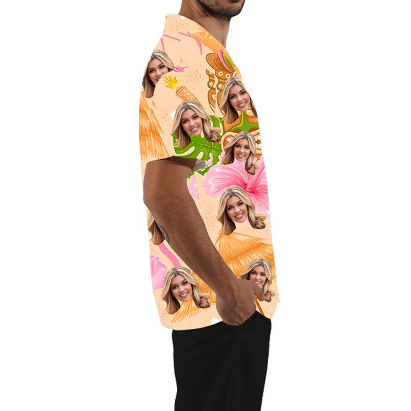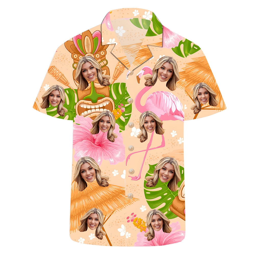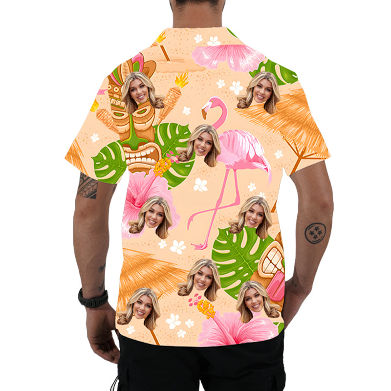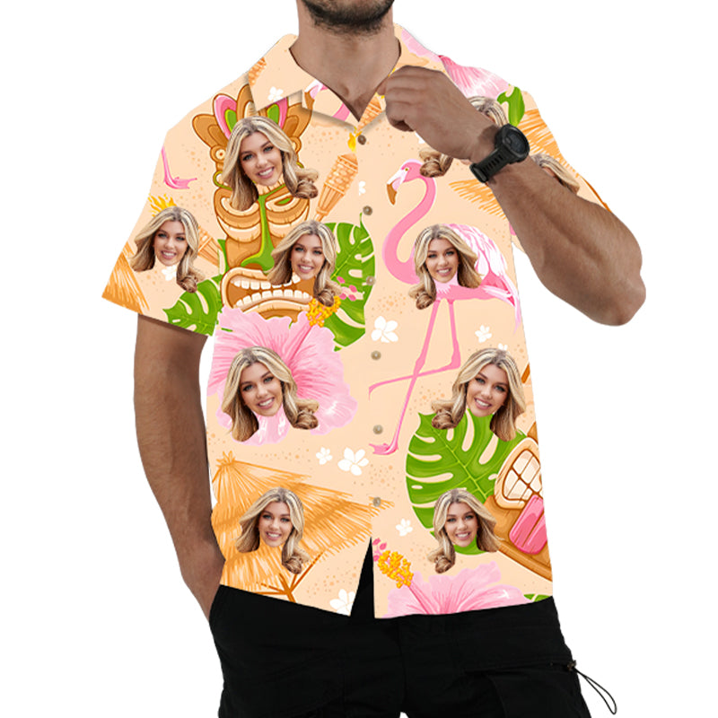 Men's Hawaiian Shirt Custom Face Photo Top Flamingo Print Short Sleeve Tee Aloha Shirts Gift for Him