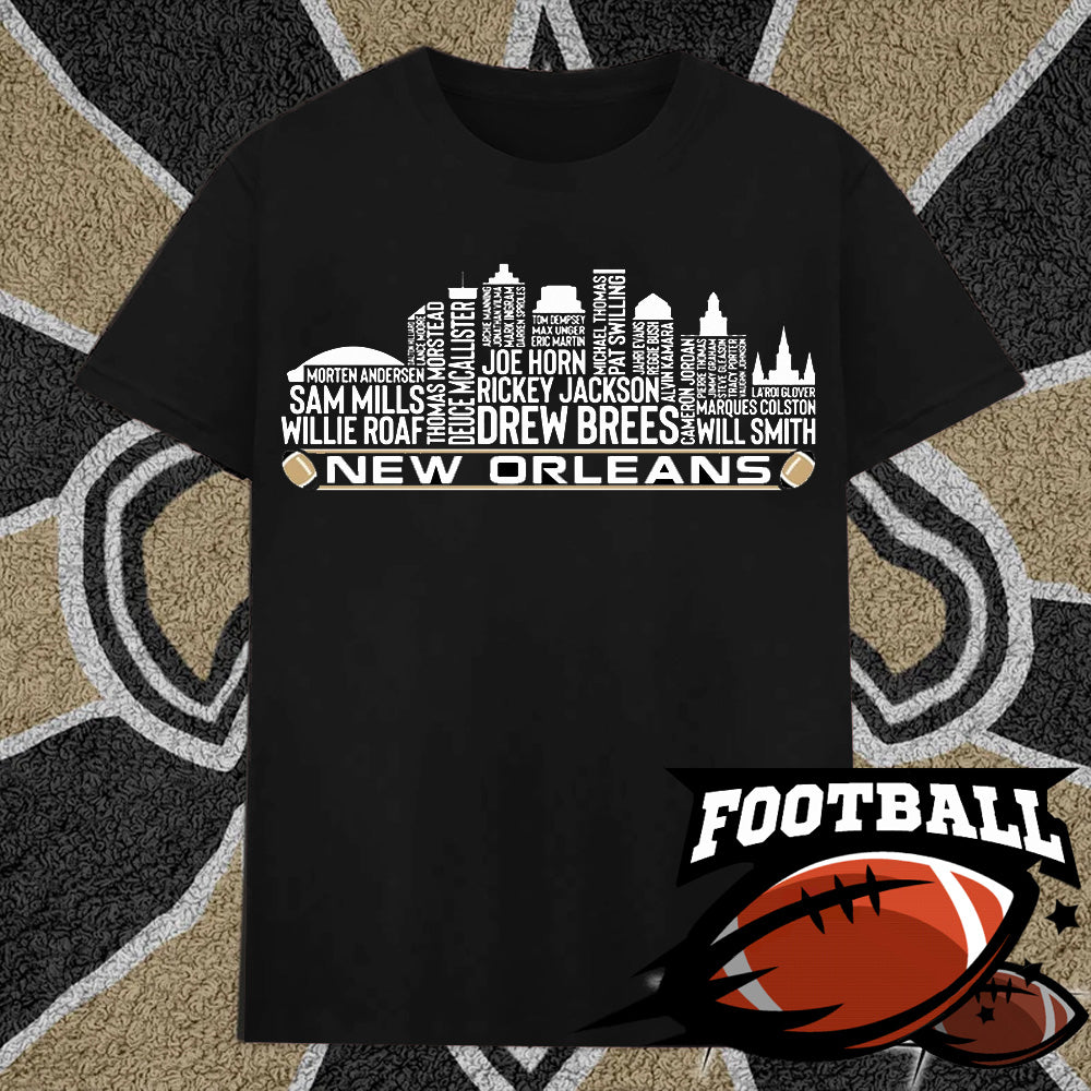 New Orleans Football Team All Time Legends Name Tee Hoodie Sweatshirt New Orleans City Skyline Tee Football Fans Gift