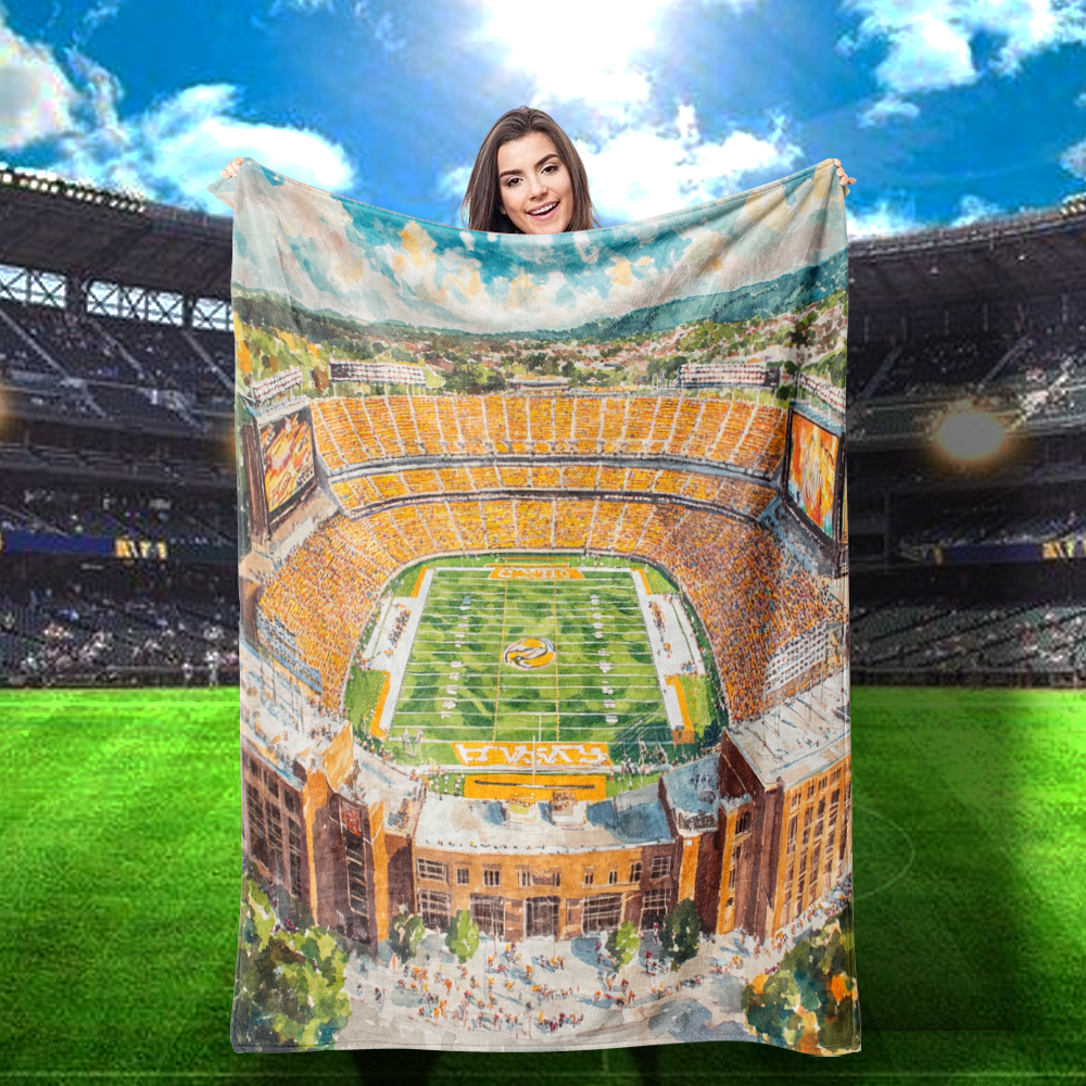 Neyland Stadum Watercolor Blanket Sherpa Blanket Tennessee Volunteers Football College Football Fan Gift