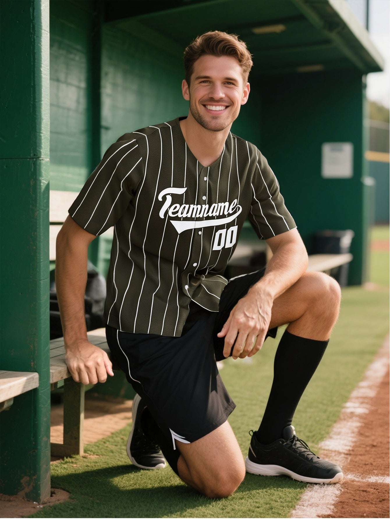 Olive Pinstripe Baseball Uniform - Premium Customization Available