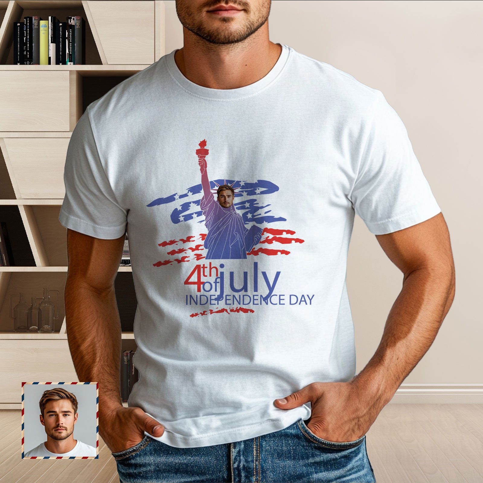 Personalized Custom Face T-Shirt Unique 4th July American Flag Print