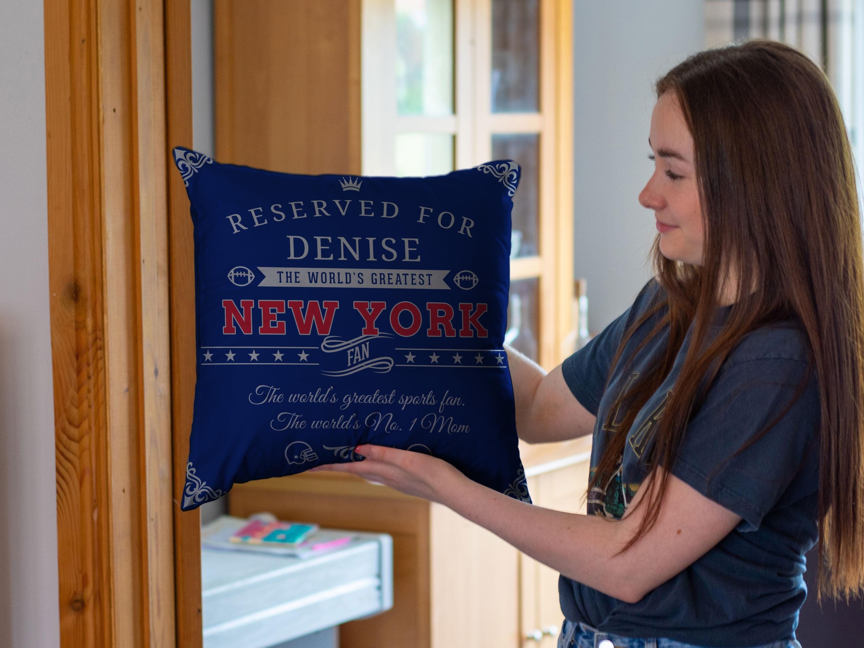 Personalized New York Football Pillow, Unique Custom Gift For American Football Fans, World’s Greatest Fan Pillow