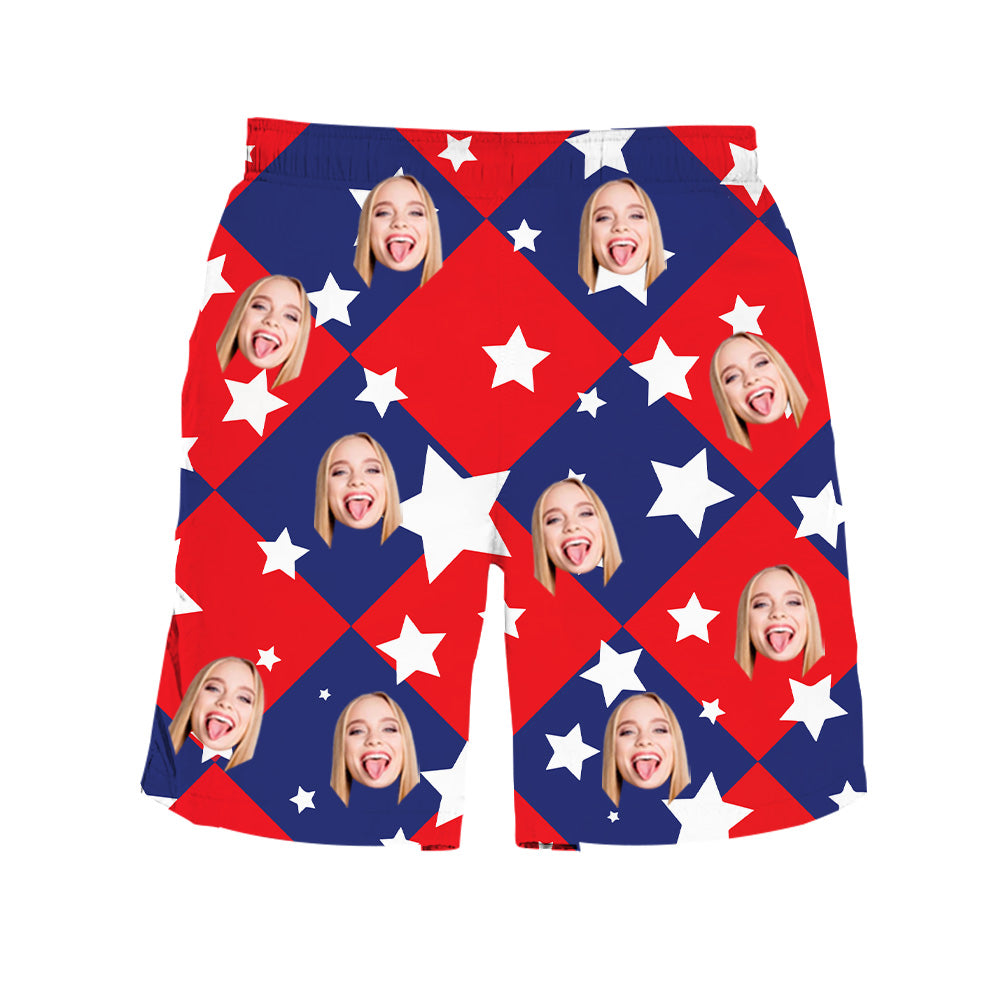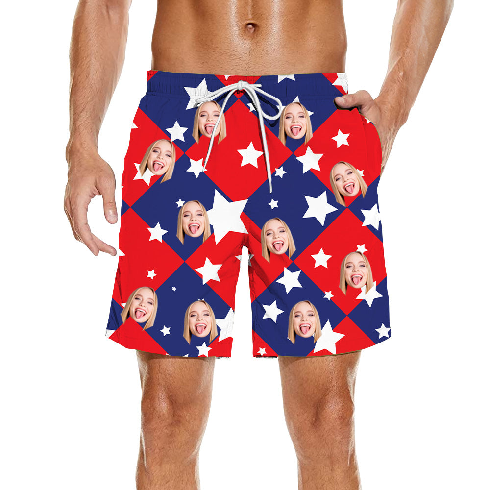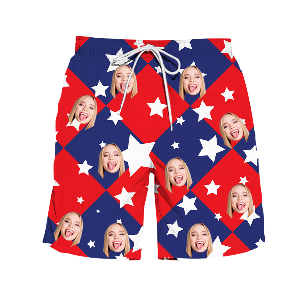 Personalized Star Swim Trunks Custom Face Unique Independence Day Style