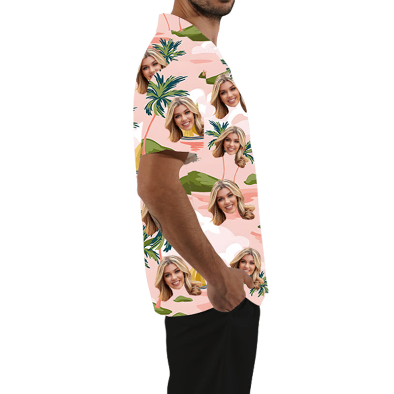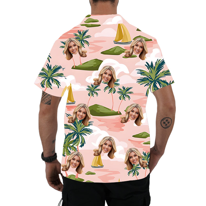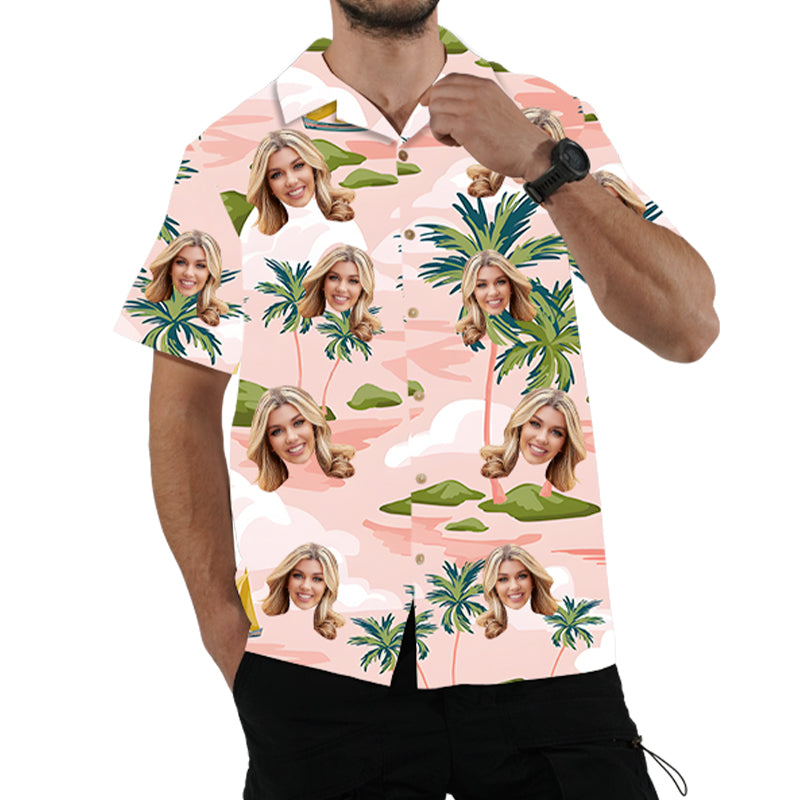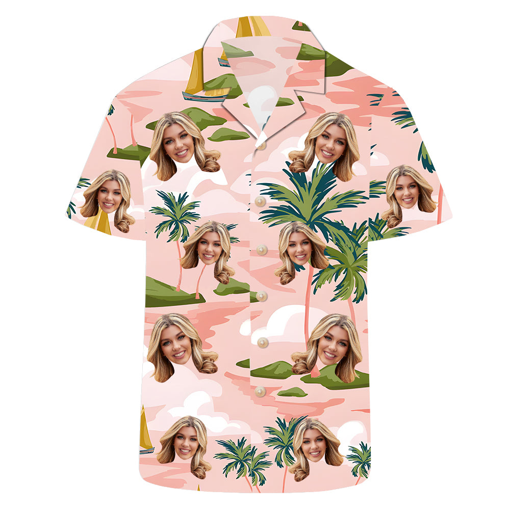 Pink Custom Shirt Personalized Face Photo Shirt Breathable Summer Vacation Outfit Valentine's Day Top Gift
