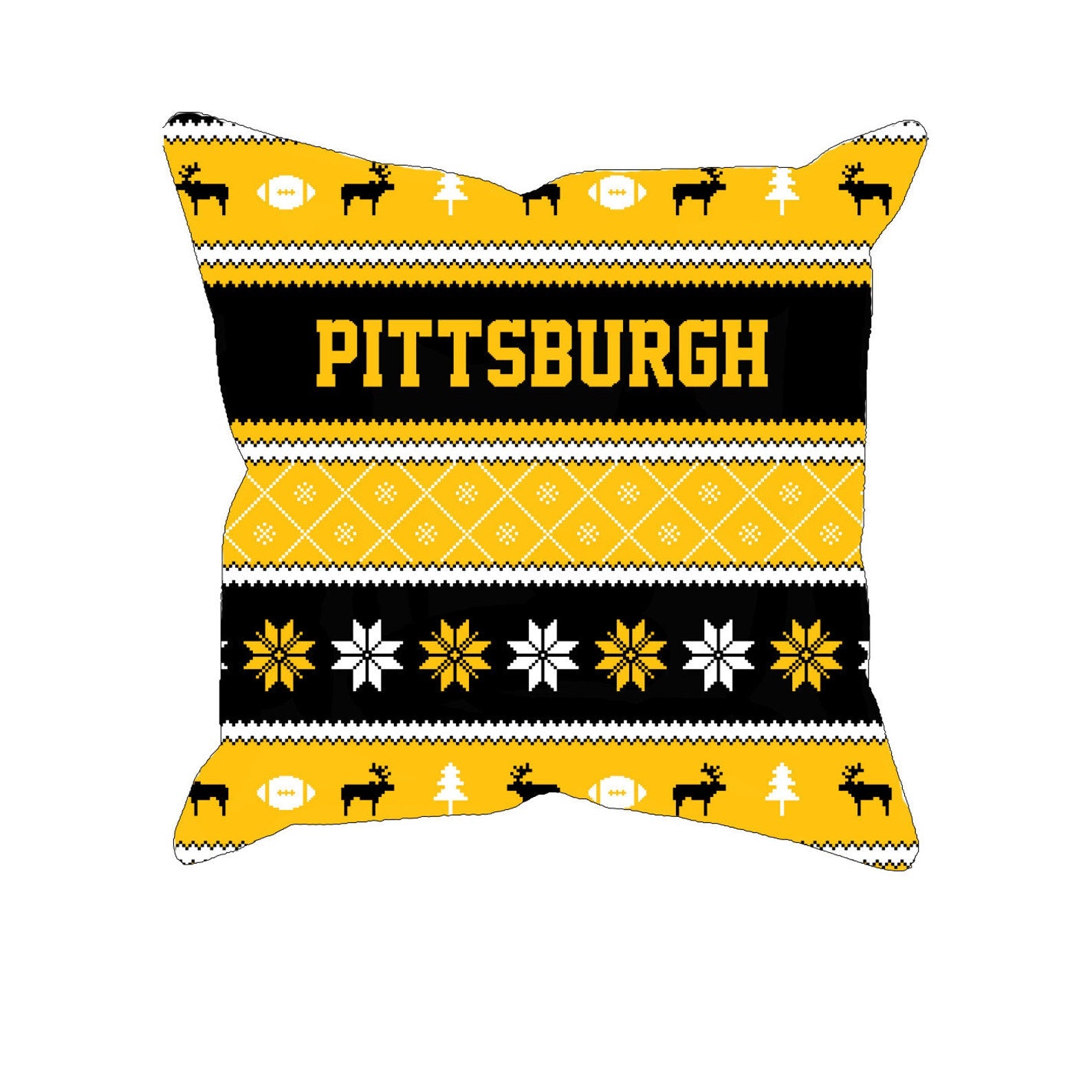 Pittsburgh Ugly Christmas Football Fan Pillow, Unique Custom Decor Gift Pillows for Football fans, Pillow Gifts for Men and Women