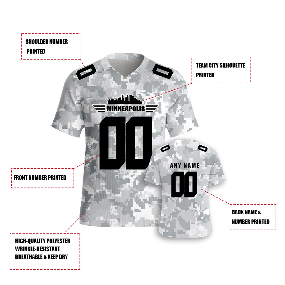 Salute To Minnesota Vikings Men's Custom Game American Football Arctic Camo Jersey for Fans Gift Quick Dry Breathable
