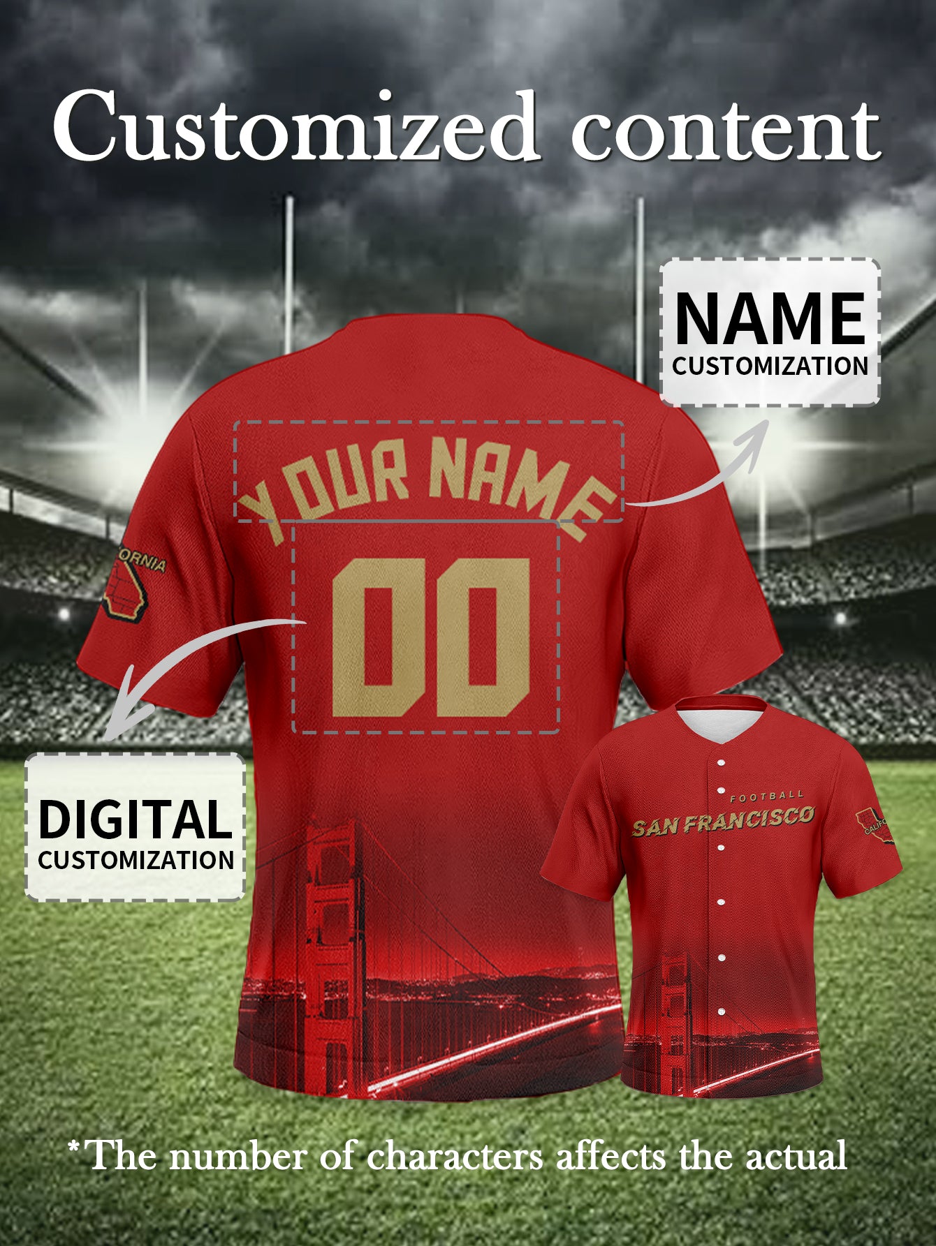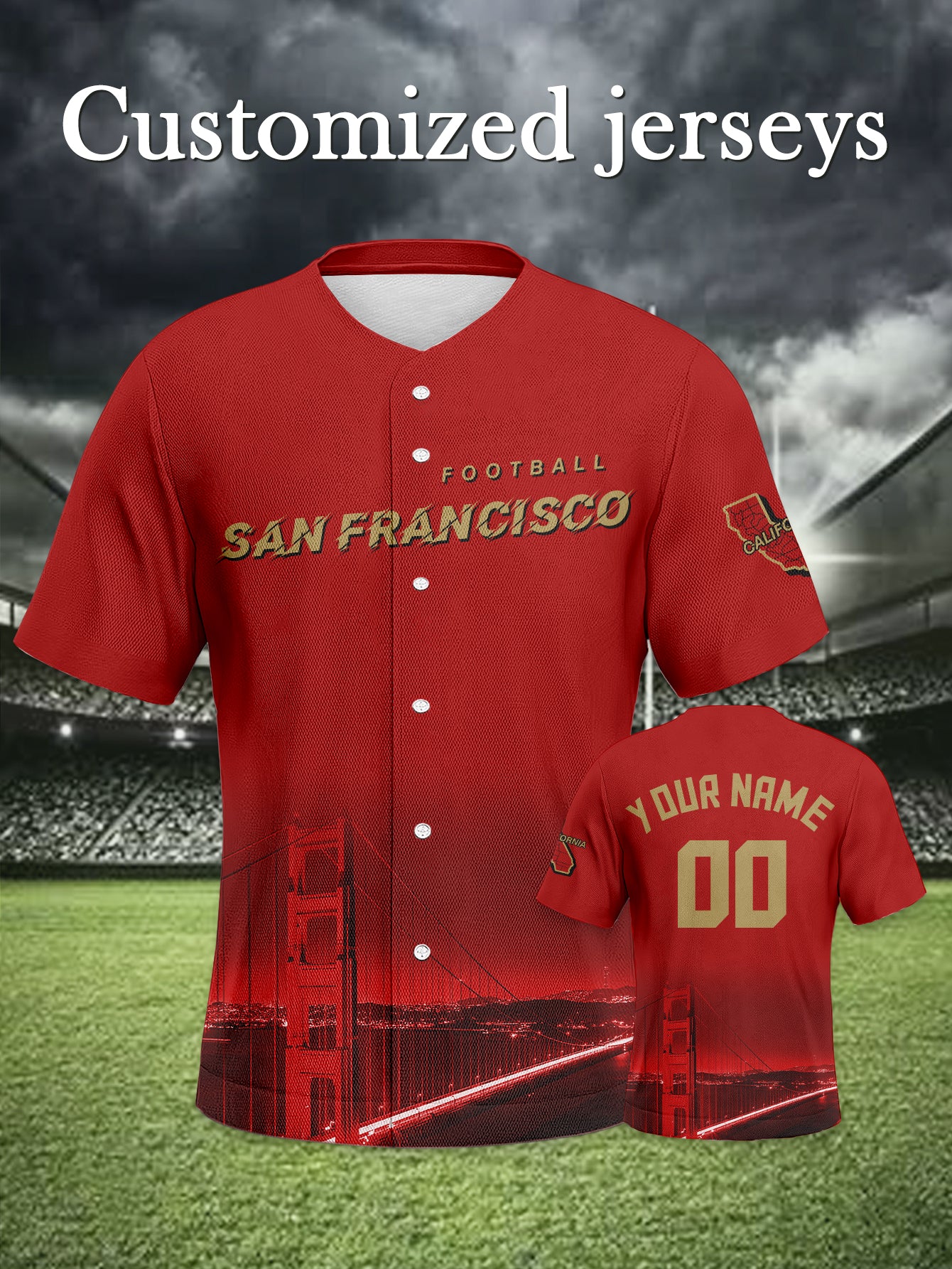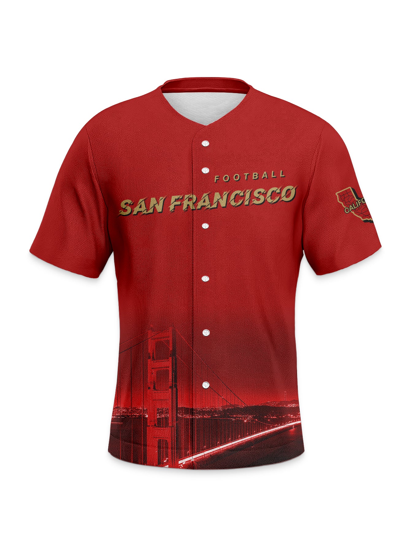 San Francisco 49ers Red-Gold Baseball Top - Embroidered Player Jersey