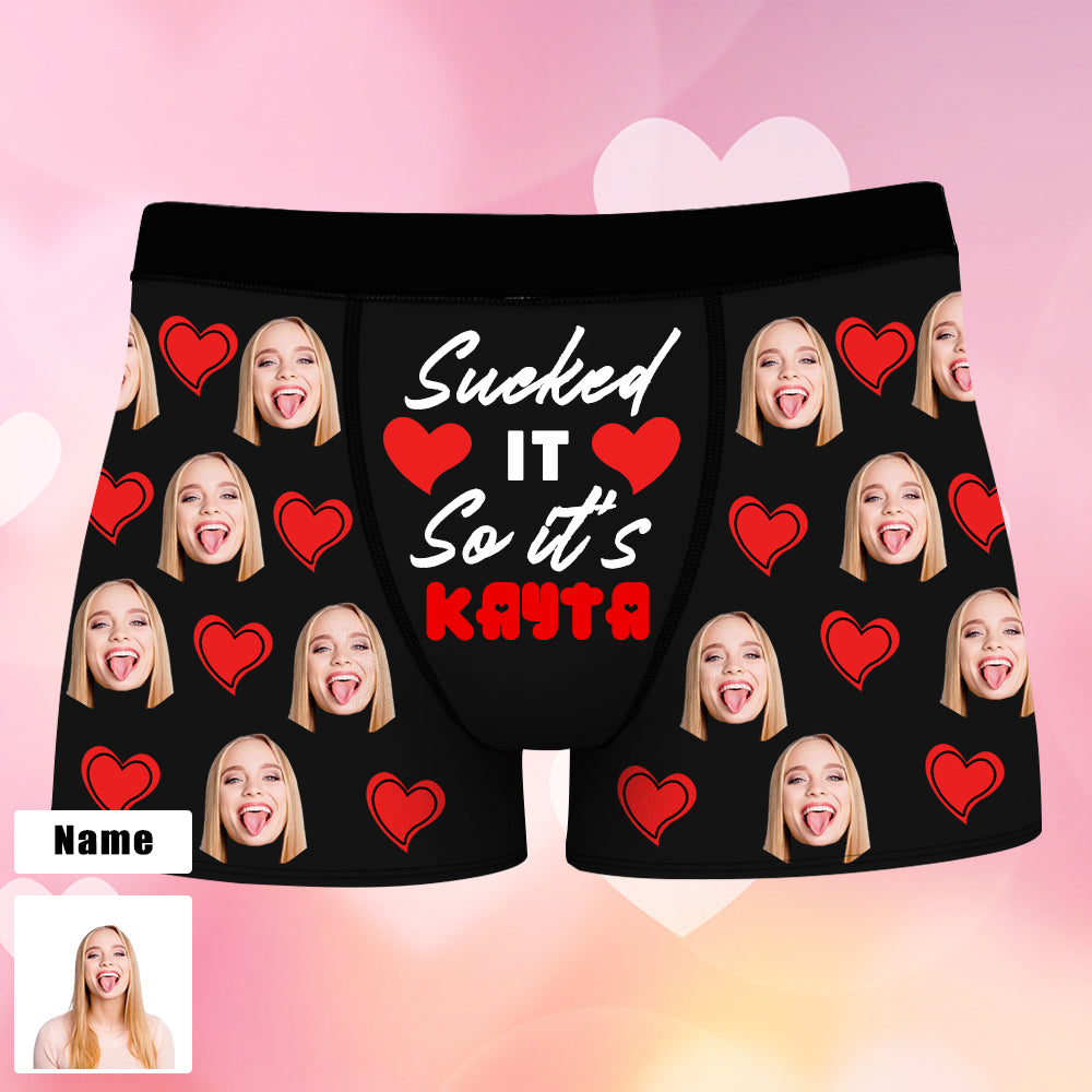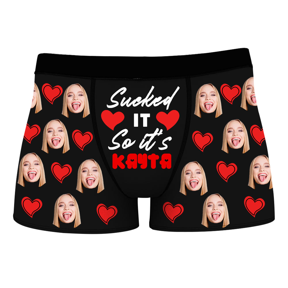 (Tax Included) 4FunGift® Sucked It So It's Add Your Name - Customized Name Breathable Men's Boxer Briefs Valentine's Day