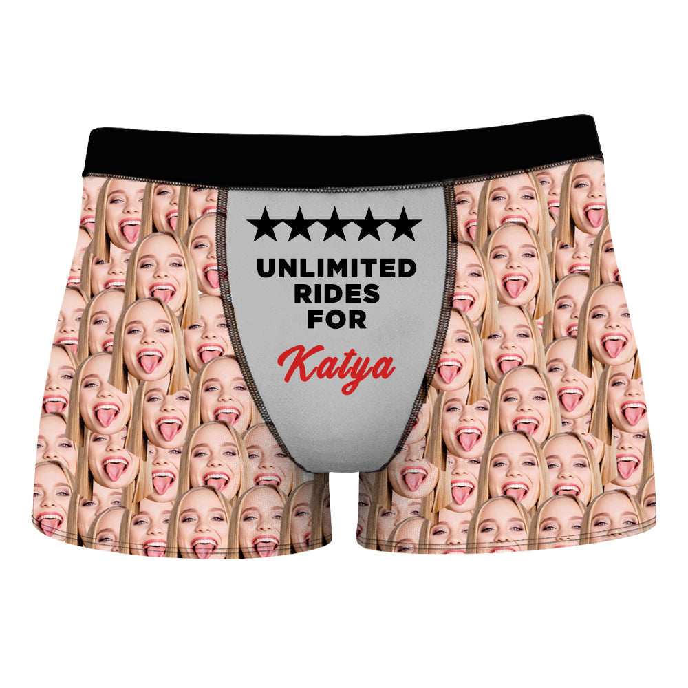- Do you think that every day the life is the same and nothing new is happening? Here is a fantastic and interesting way to make a difference in your life, which is to put the photo of the person who is special for you on underwear, we provide both men's custom boxers and women's custom panties! It is a great way to promote feelings between you and your lover.