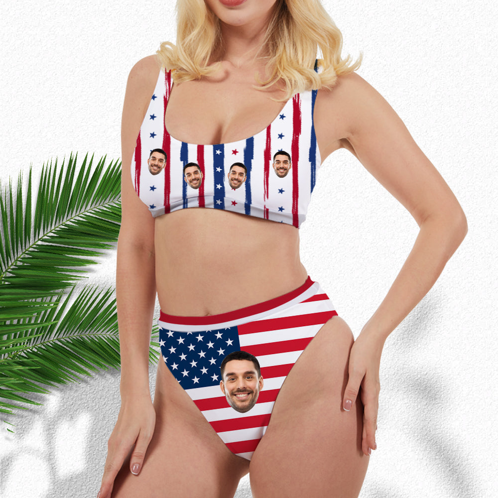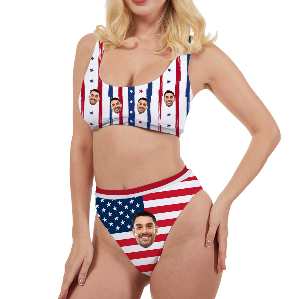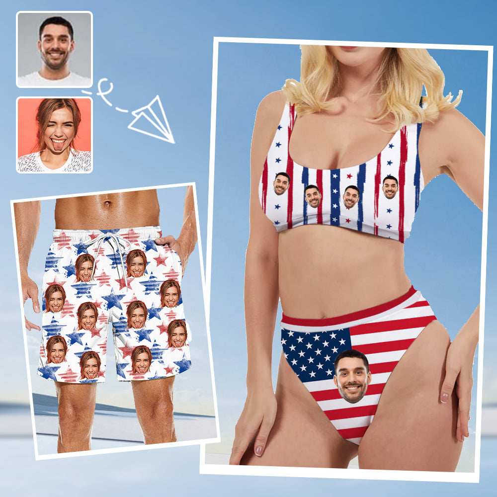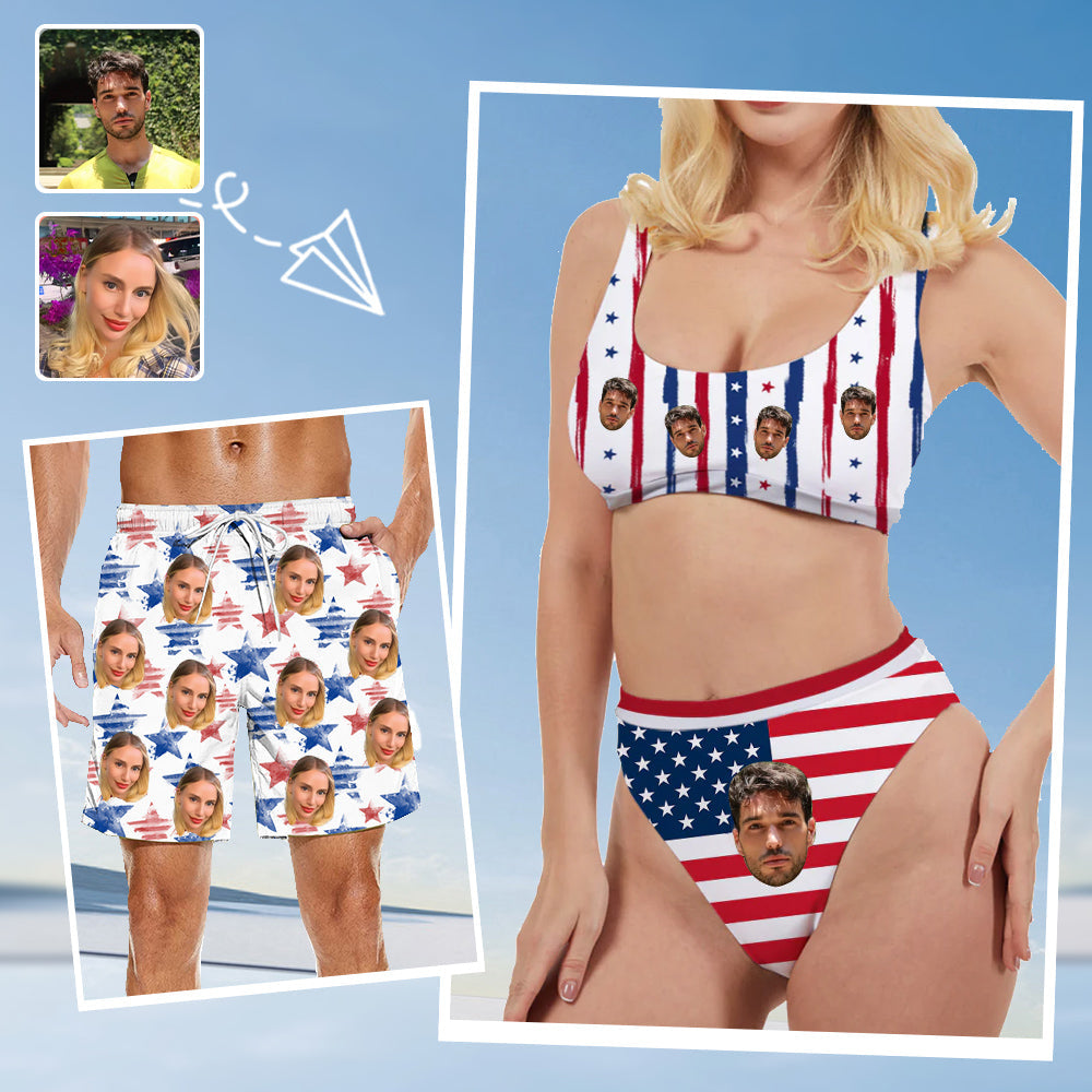 (Tax Included) American Independence Day Flag Print Customized Women's Bikini Two-piece Set & Men's Beach Shorts Couple's Beach Wear