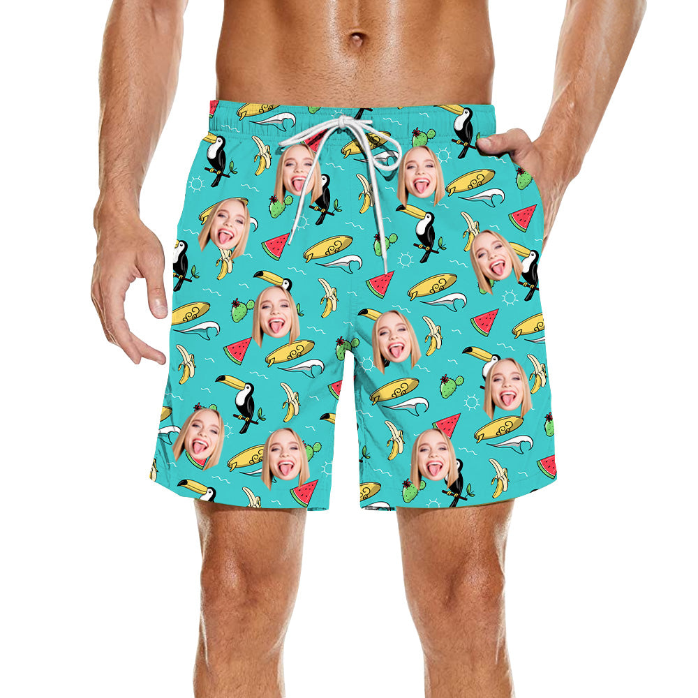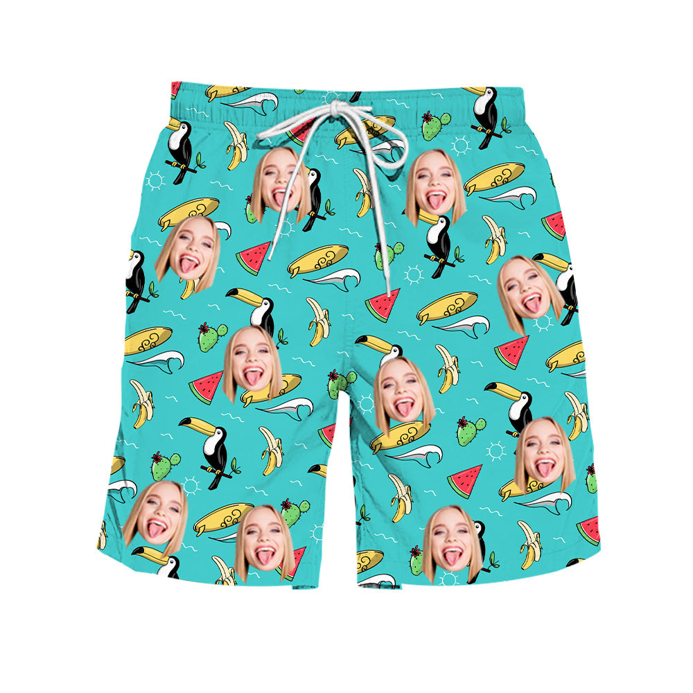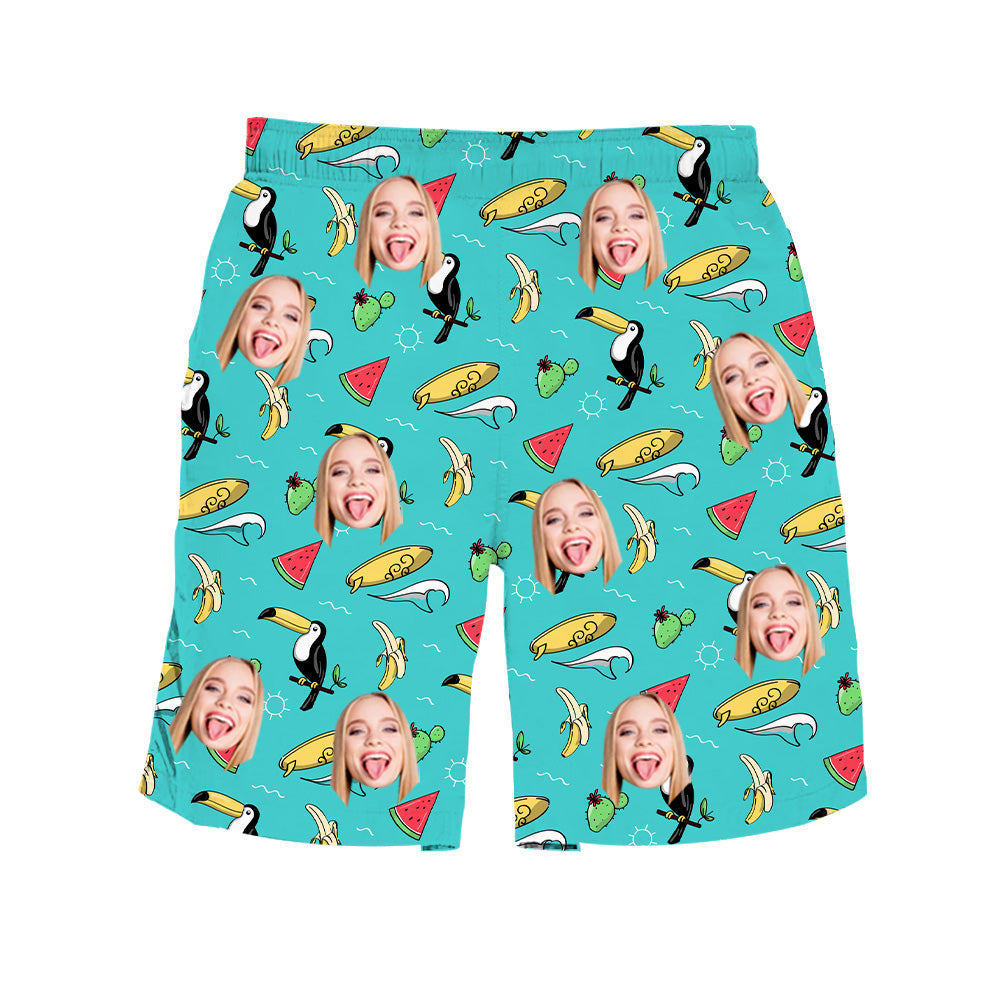 - Either to get a smile out of you or to use every day, you are going to love our custom beach shorts with photo. They are made with the best material and super soft you will enjoy wearing. Customize your beach shorts with your favorite photo face and make the perfect gift! Make the perfect beach shorts for family and friends that they will never forget about.