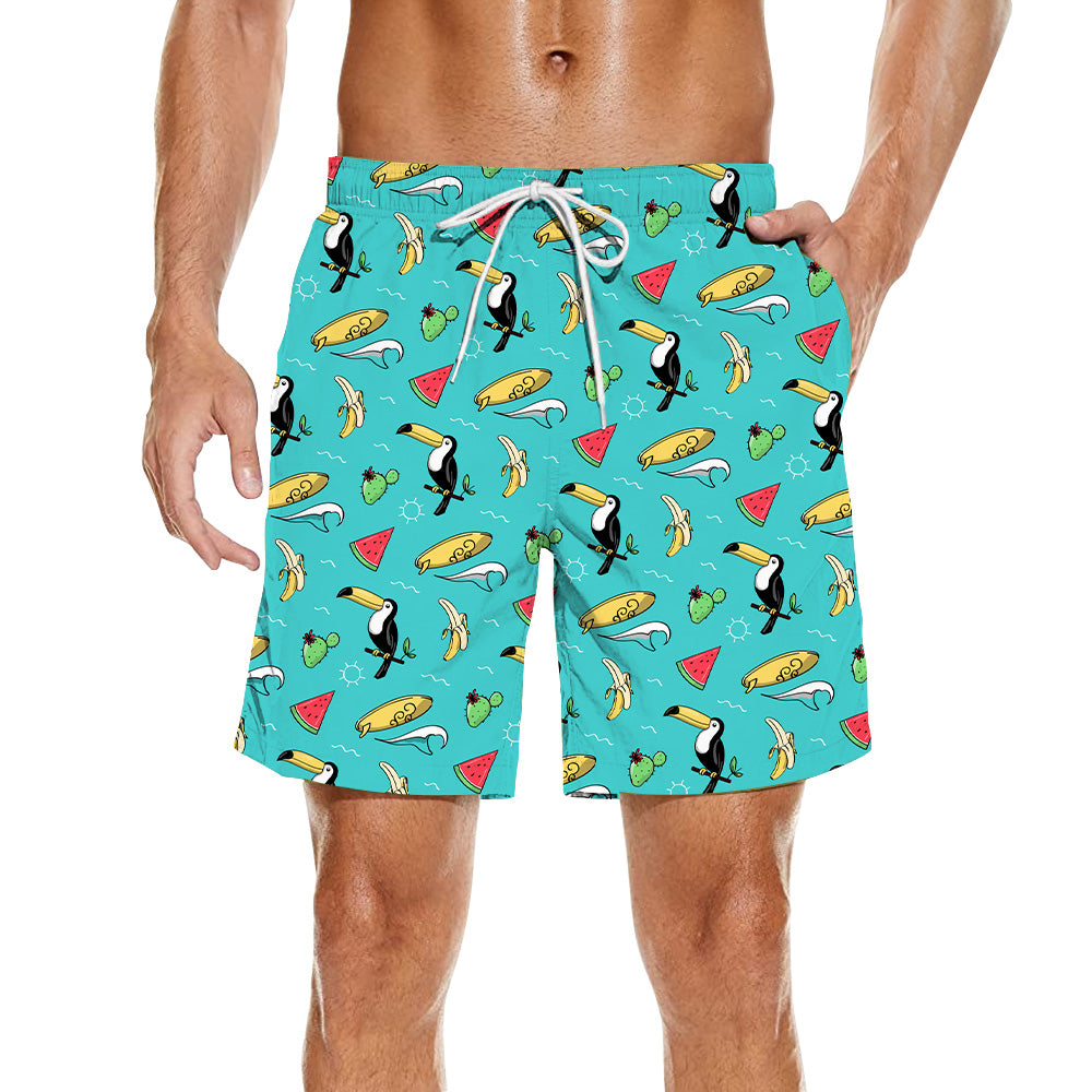 (Tax Included) Cool Custom Face Beach Shorts With Bananas & Toucans Pattern