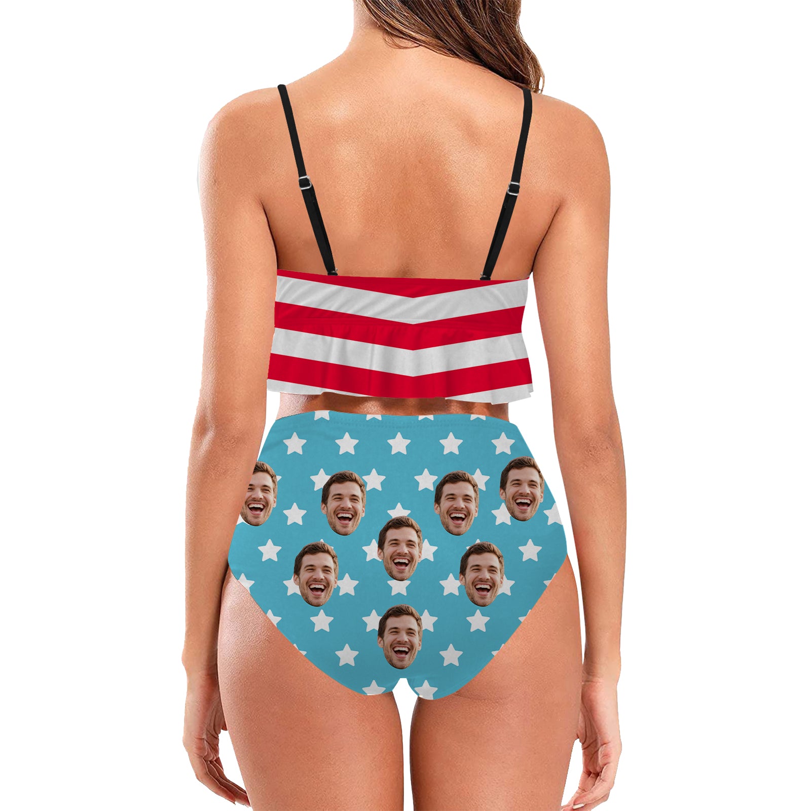(Tax Included) Custom Face Classic Red/White/Blue Bikini - Timeless Flag Design With Photo Print
