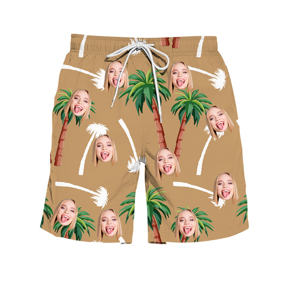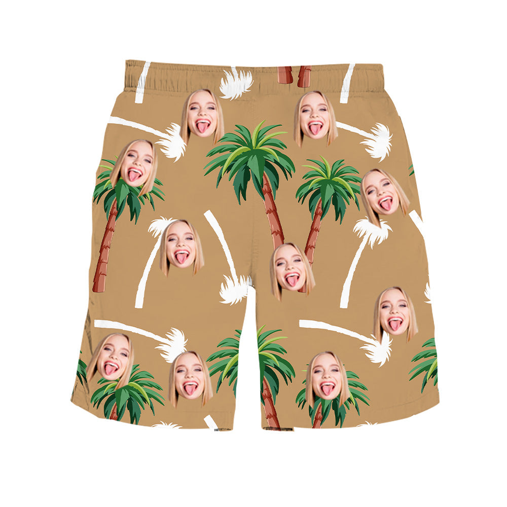 - Either to get a smile out of you or to use every day, you are going to love our custom beach shorts with photo. They are made with the best material and super soft you will enjoy wearing. Customize your beach shorts with your favorite photo face and make the perfect gift! Make the perfect beach shorts for family and friends that they will never forget about.