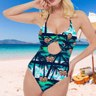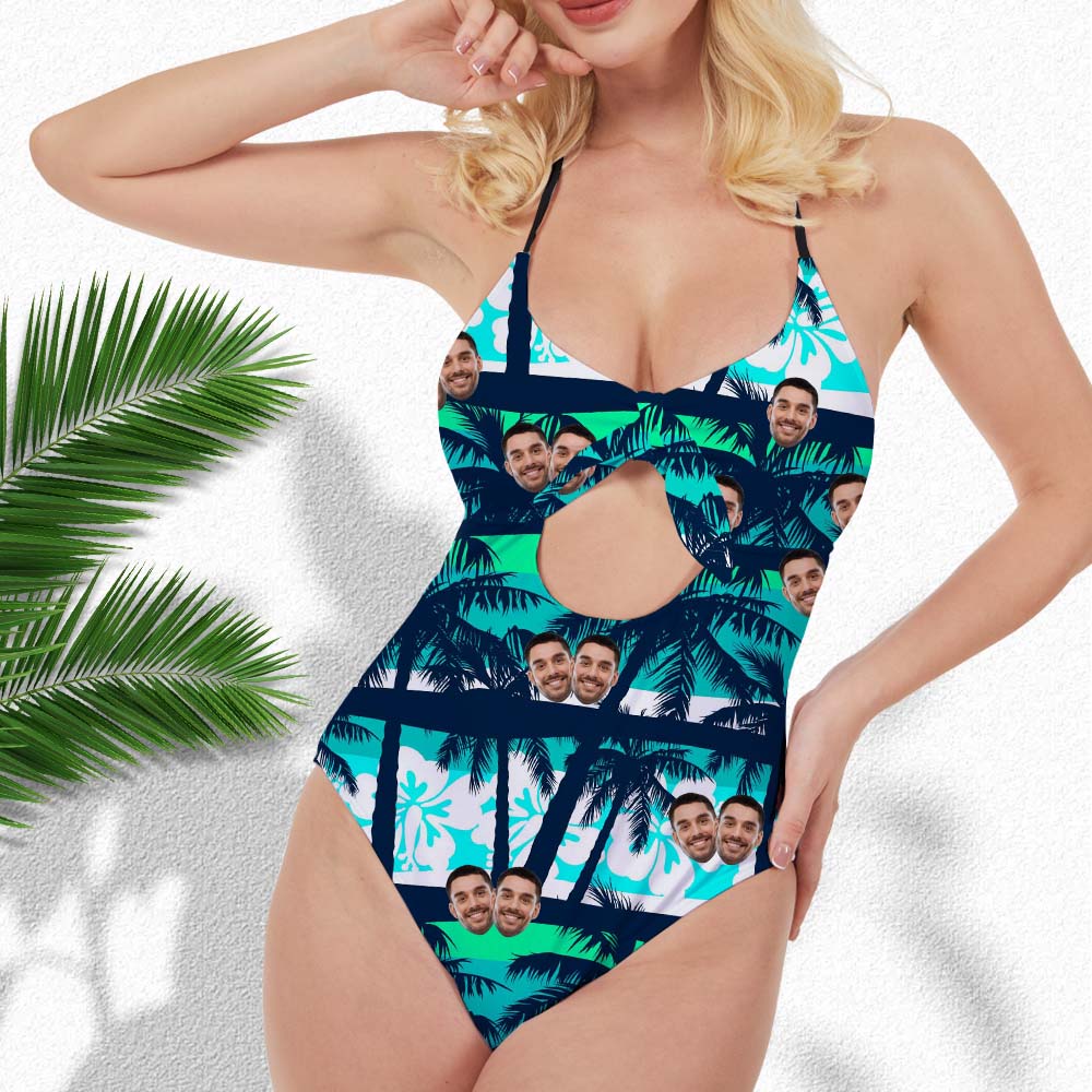 (Tax Included) Custom Face Coconut Tree Women's Backless Bow Swimsuit