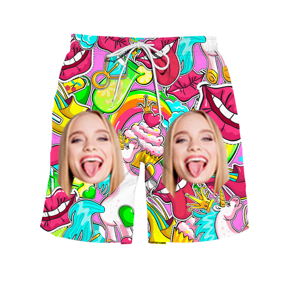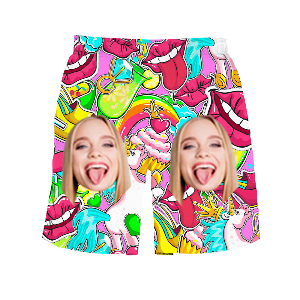 - Either to get a smile out of you or to use every day, you are going to love our custom beach shorts with photo. They are made with the best material and super soft you will enjoy wearing. Customize your beach shorts with your favorite photo face and make the perfect gift! Make the perfect beach shorts for family and friends that they will never forget about.