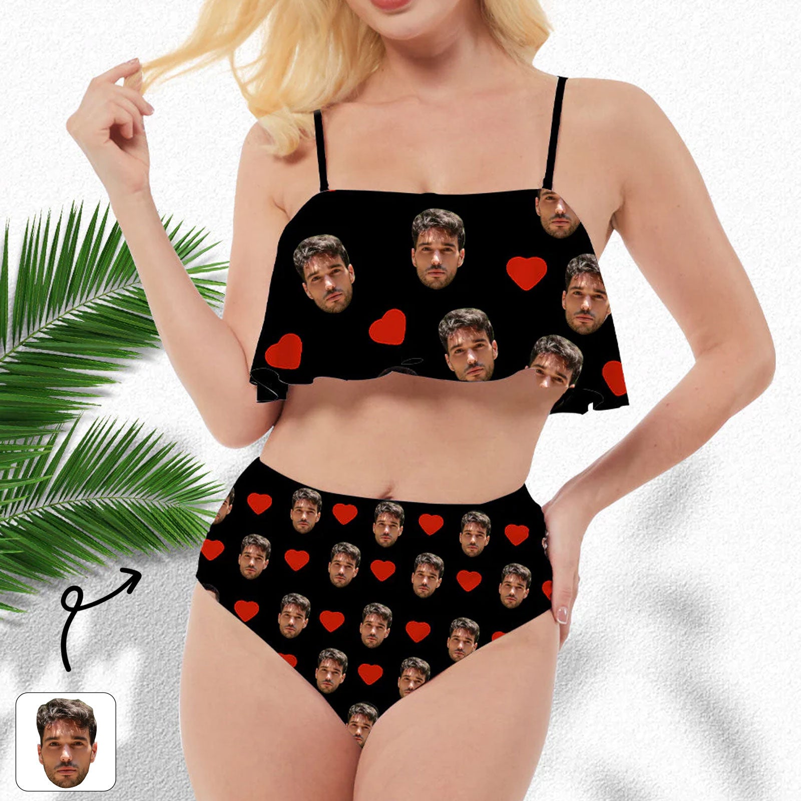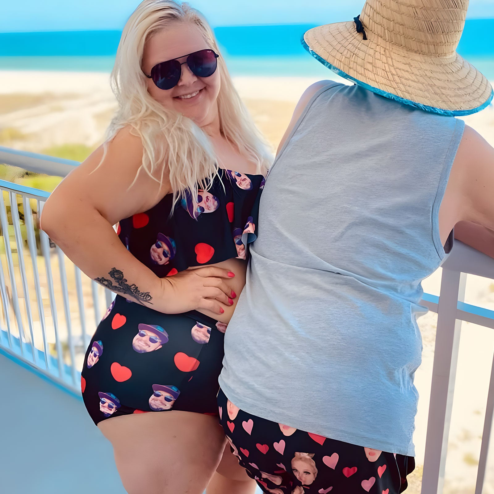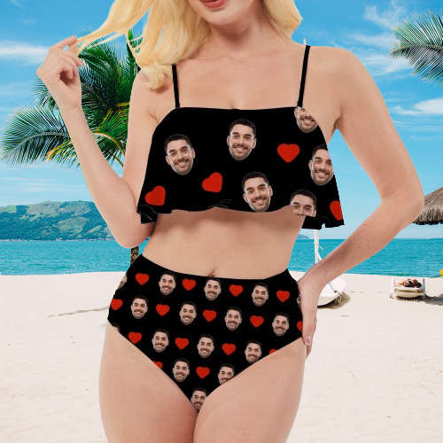 (Tax Included) Custom Face Red Heart Ruffle Swimsuit