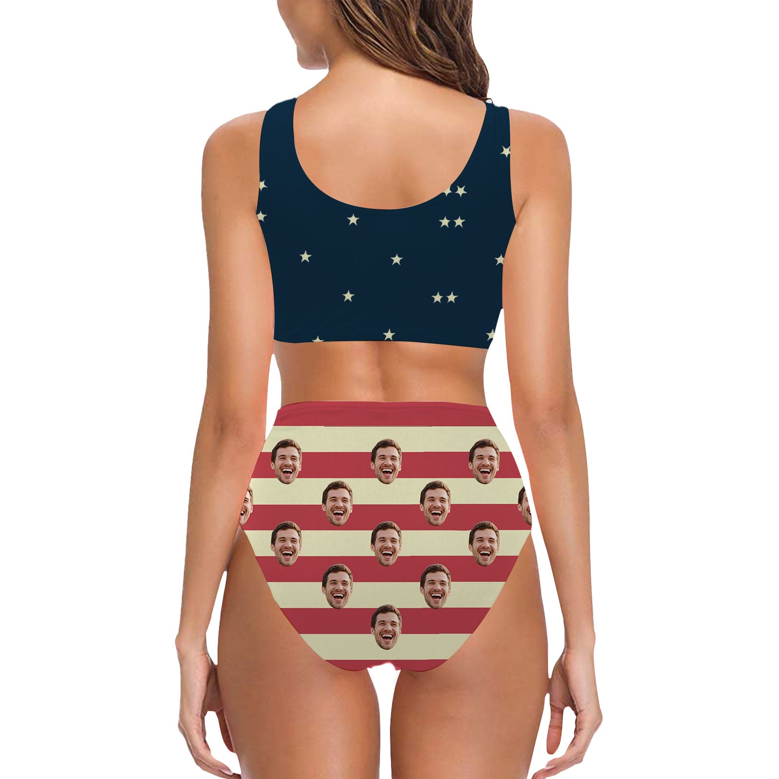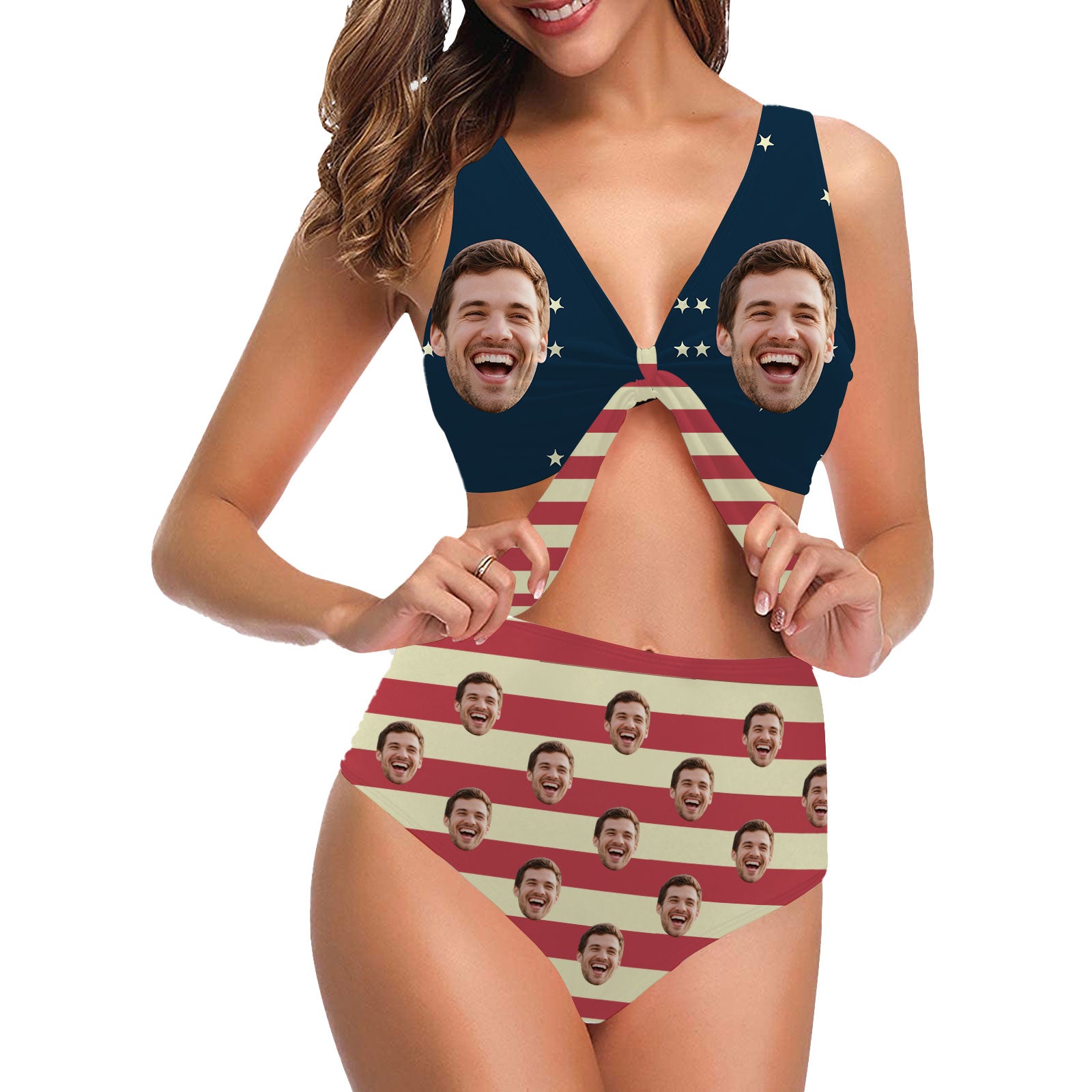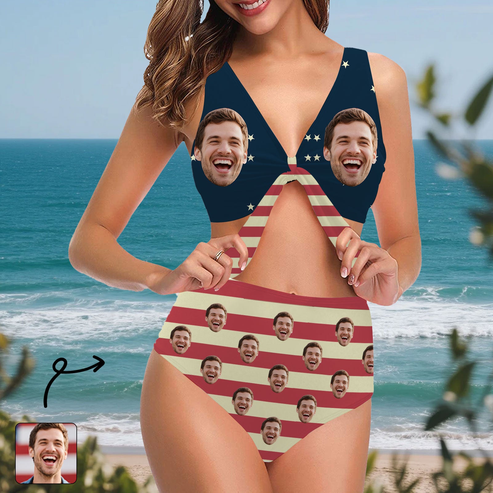 (Tax Included) Custom Face Vintage Flag Swimsuit - Retro Portrait Beach Style