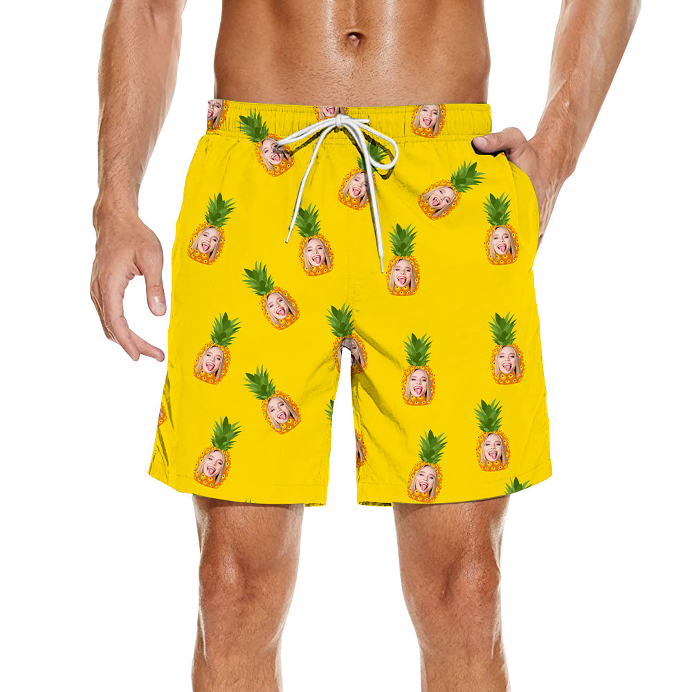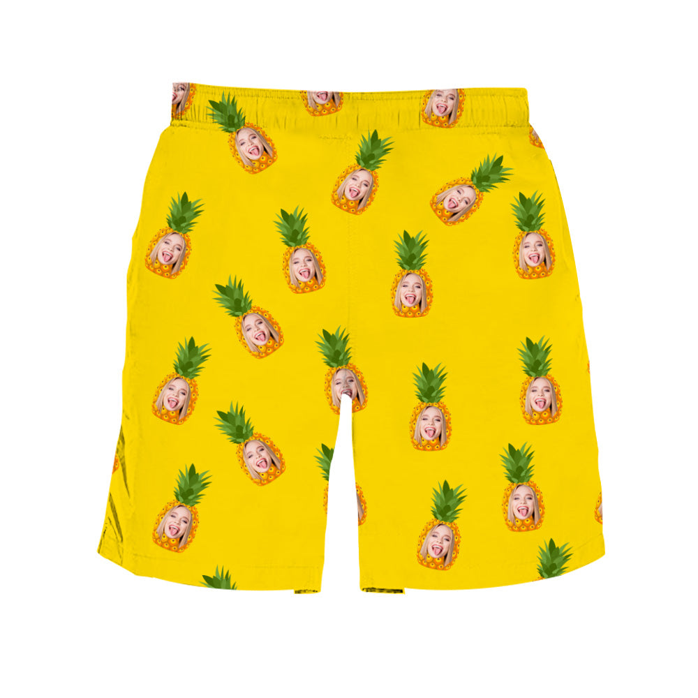 (Tax Included) Custom Face Yellow Pineapple Beach Shorts - Fresh Portrait Style For Summer