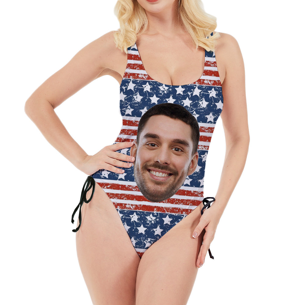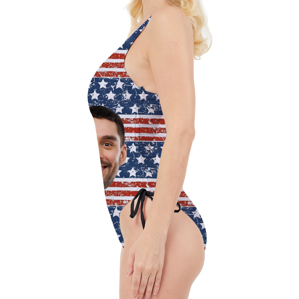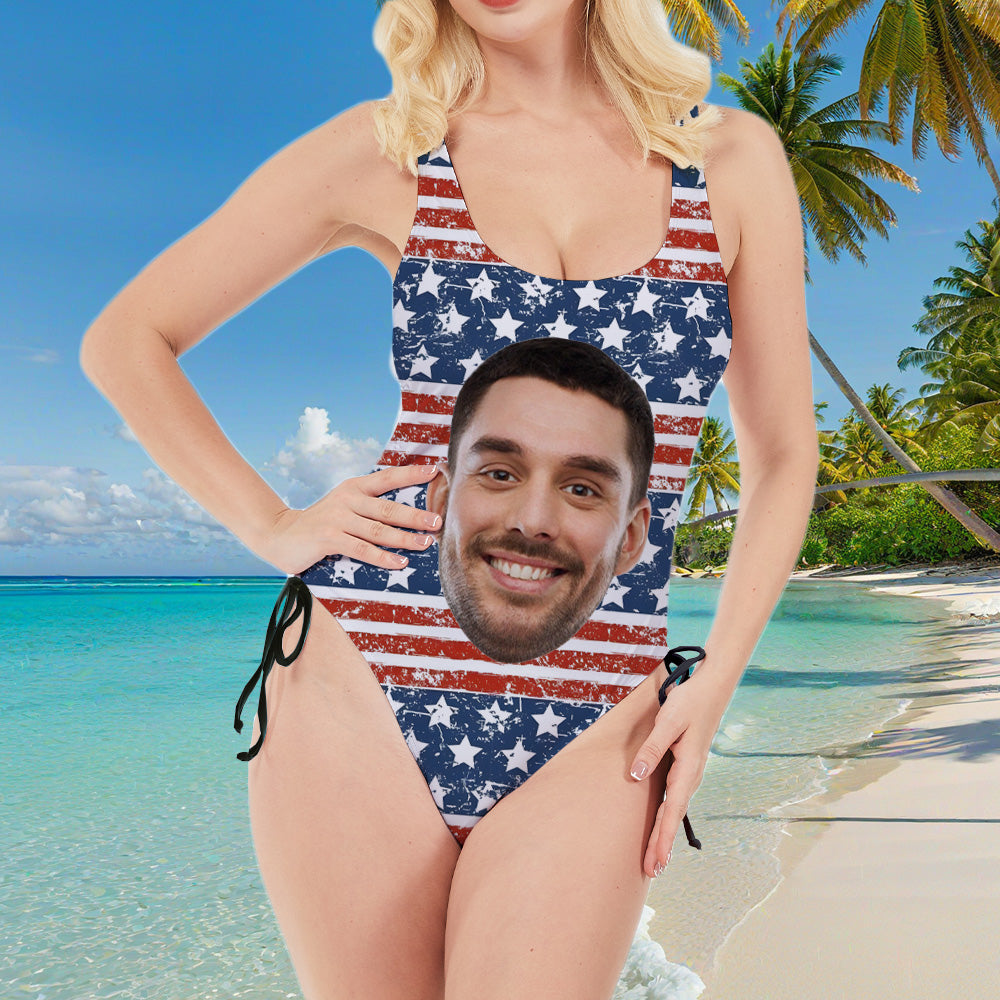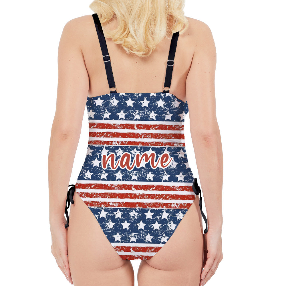 (Tax Included) Custom Stars And Stripes One Piece Swimsuit Unique American Flag 4th Of July Swimwear