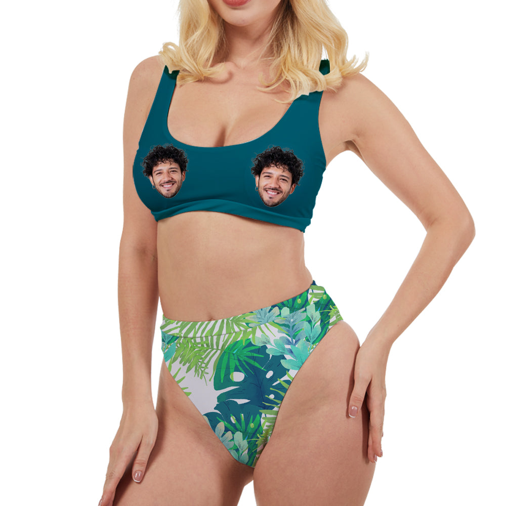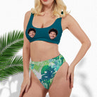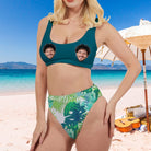 (Tax Included) Custom Women's One Piece Swimsuit Summer Palm Leaves Print Green Bathing Suit