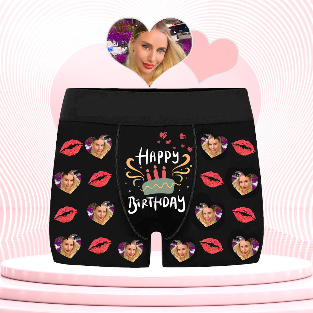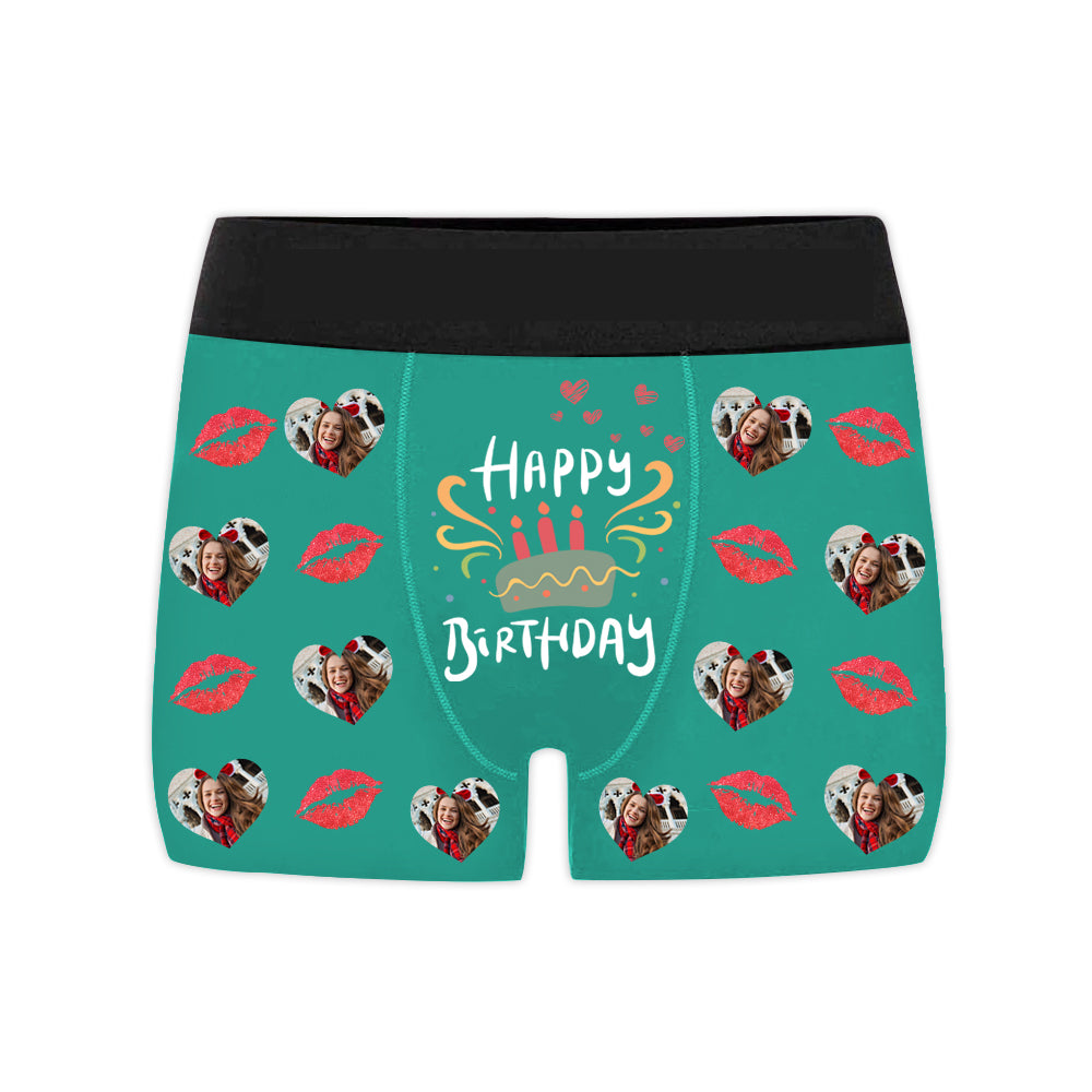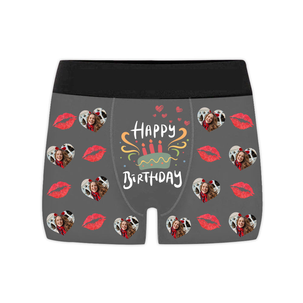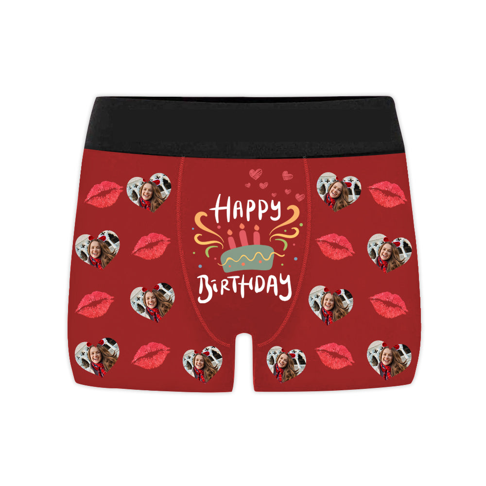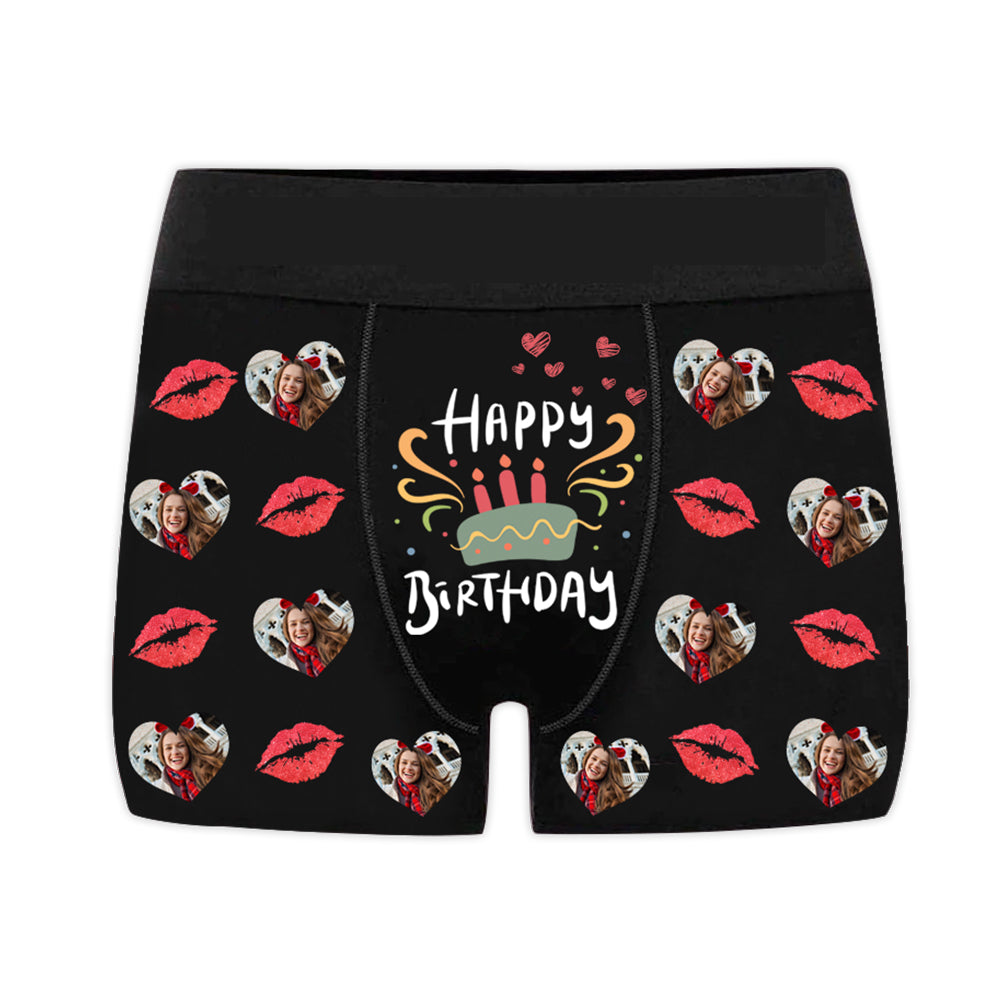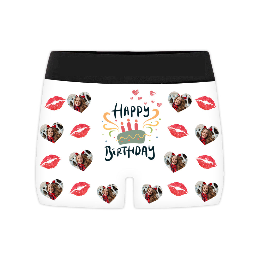 (Tax Included) Happy Birthday Lip Print Love Photo Customized Men's Boxer Underwear Birthday Gift