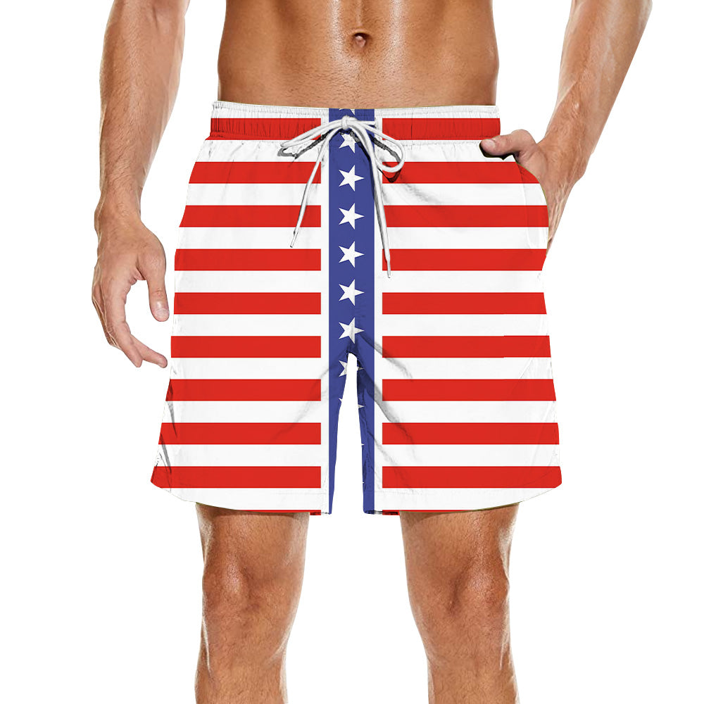 (Tax Included) Liberty Stripe Beach Shorts Featuring Your Embroidered Face
