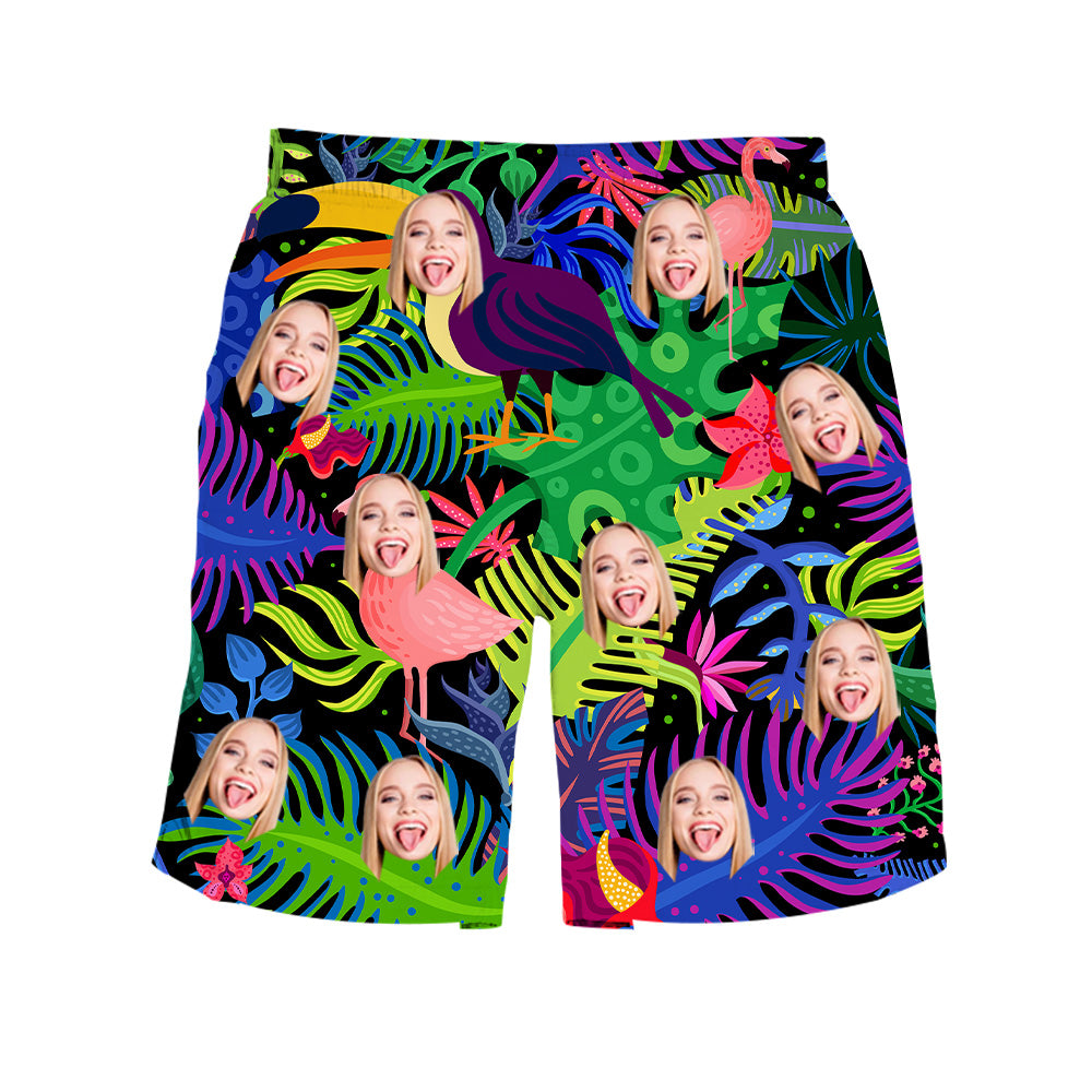 - Either to get a smile out of you or to use every day, you are going to love our custom beach shorts with photo. They are made with the best material and super soft you will enjoy wearing. Customize your beach shorts with your favorite photo face and make the perfect gift! Make the perfect beach shorts for family and friends that they will never forget about.