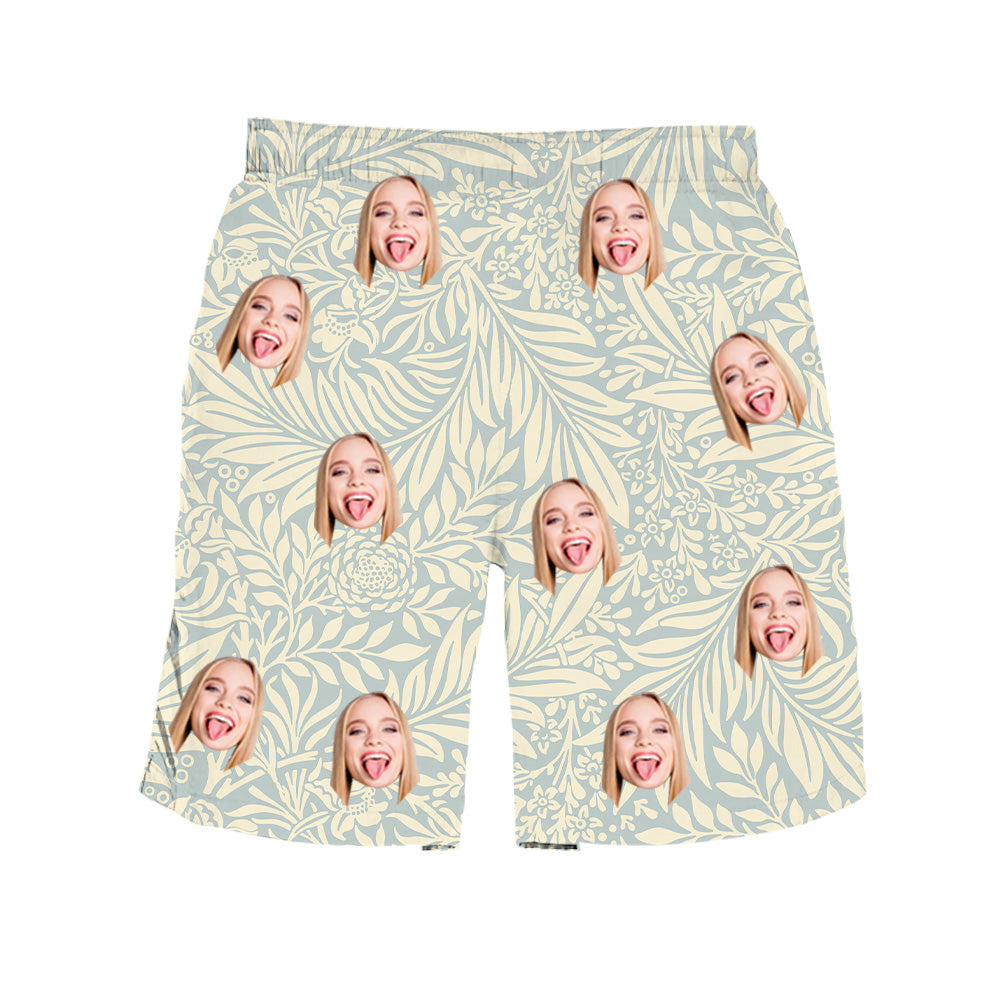 - Either to get a smile out of you or to use every day, you are going to love our custom beach shorts with photo. They are made with the best material and super soft you will enjoy wearing. Customize your beach shorts with your favorite photo face and make the perfect gift! Make the perfect beach shorts for family and friends that they will never forget about.
