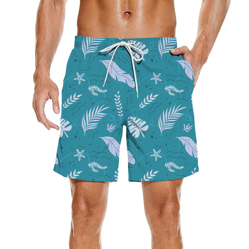 (Tax Included) Personalized Custom Face Beach Shorts With Seaweed Patterns For Pool Parties
