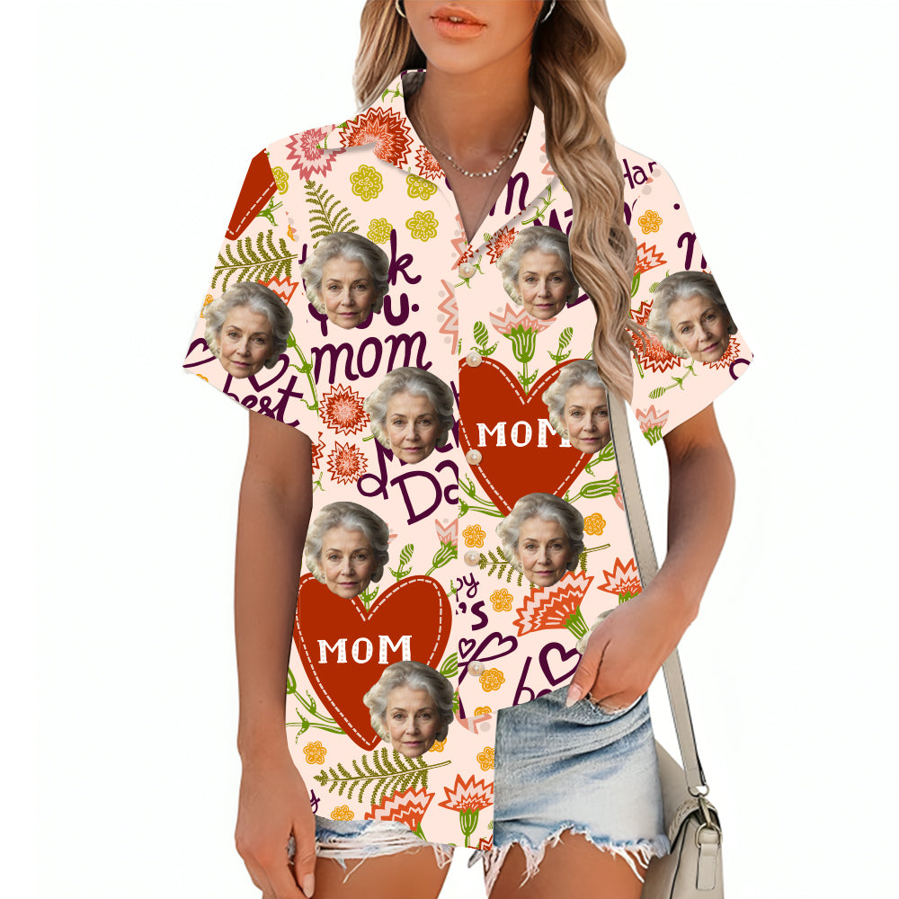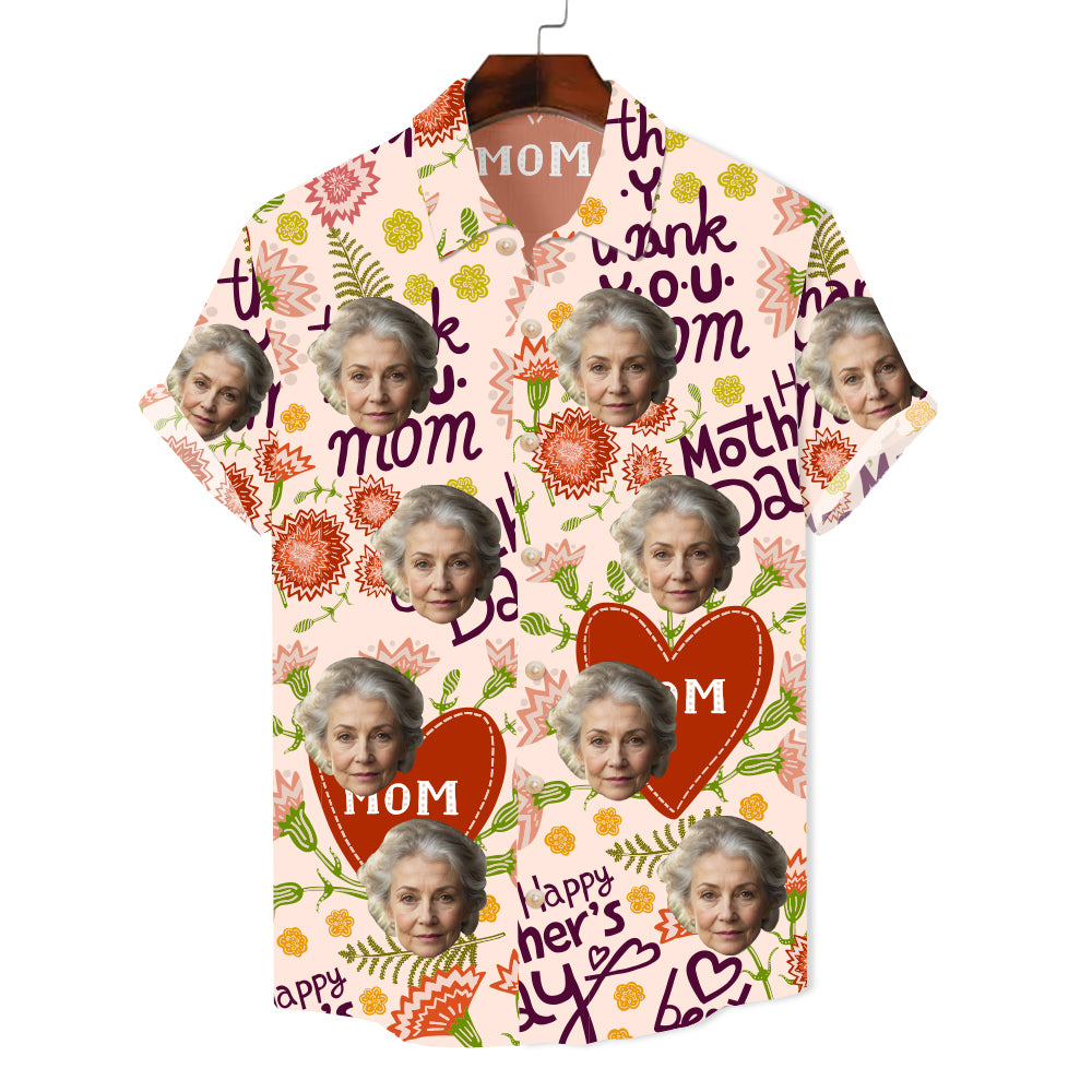 (Tax Included) Personalized Mother's Day Gifts Customized Heart Flower Hawaiian Shirts With Family Photos