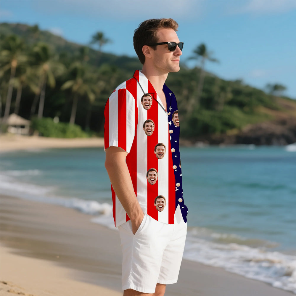 (Tax Included) Red/White/Blue Gradient Aloha Shirt & Custom Face Art