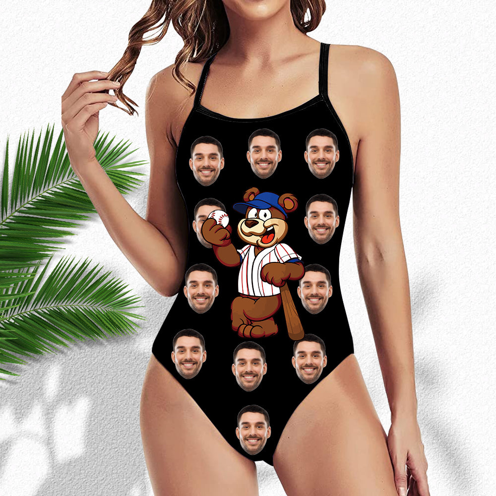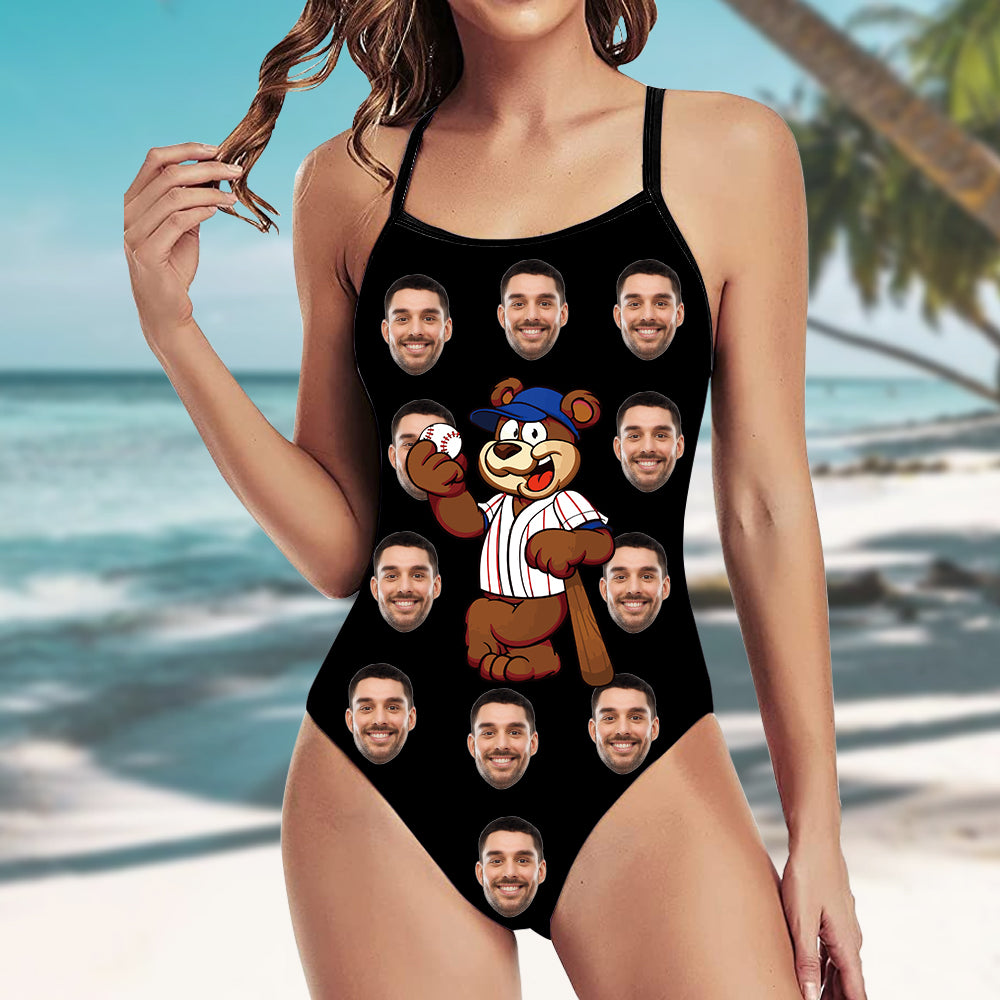 (Tax Included) Sports Baseball Personalized Swimsuit Custom Face Sexy Playful One-Piece Swimsuit Stylish Sportswear Look