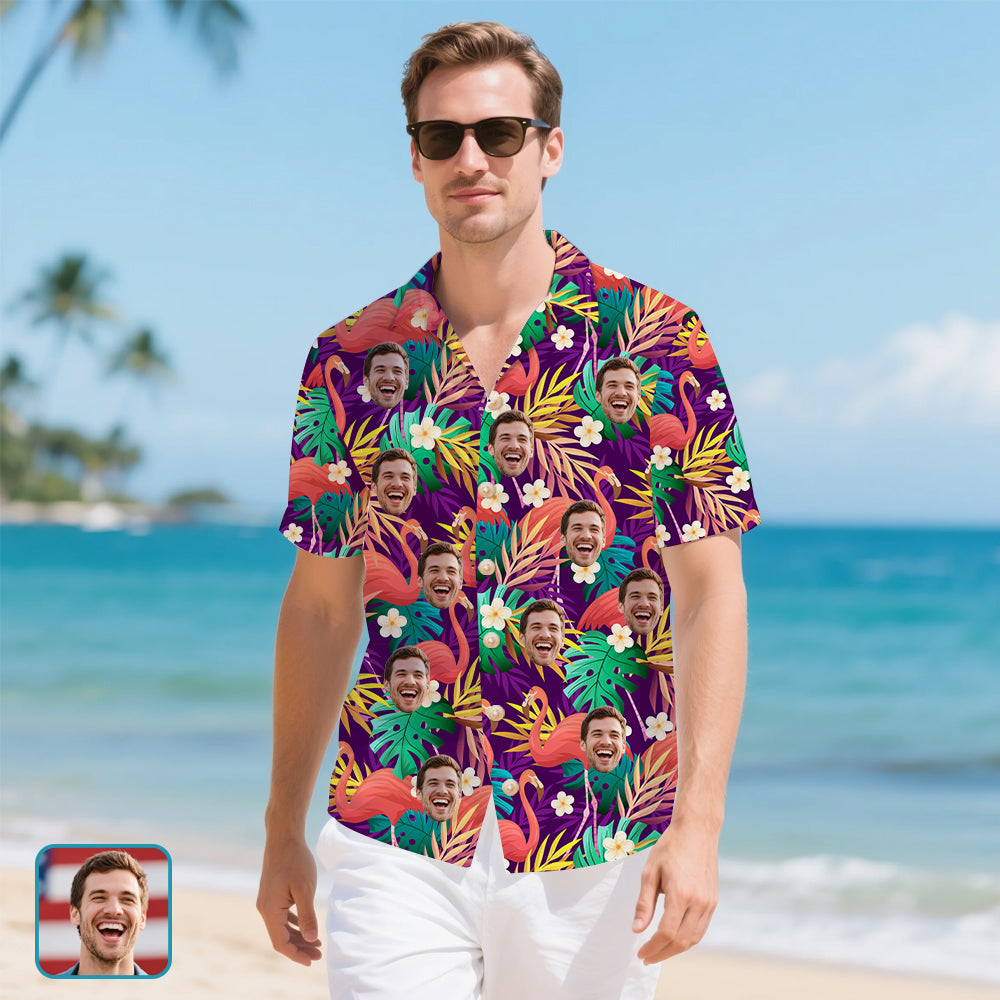 (Tax Included) Vacation Style Personalized Floral Aloha Shirt Custom Face Design