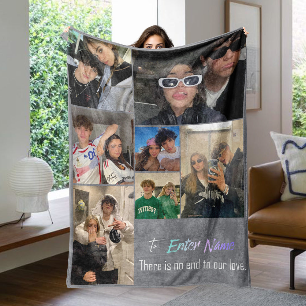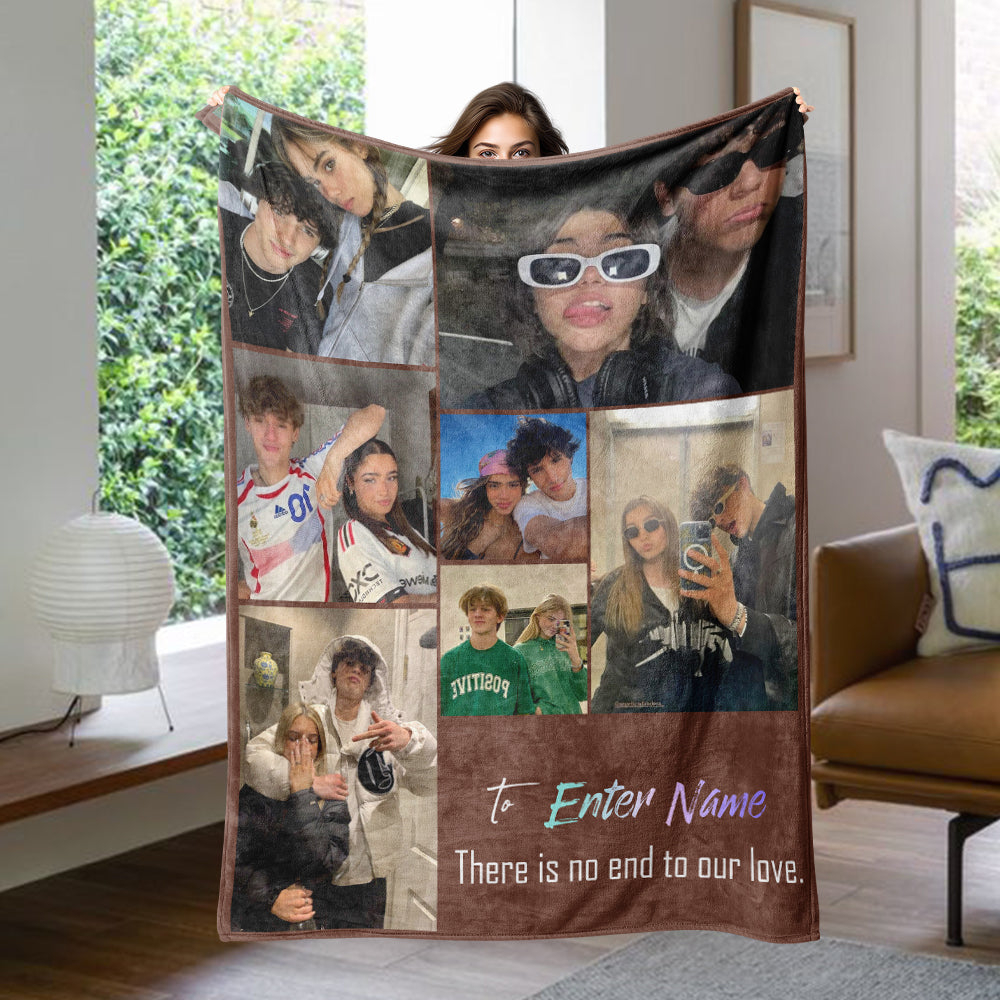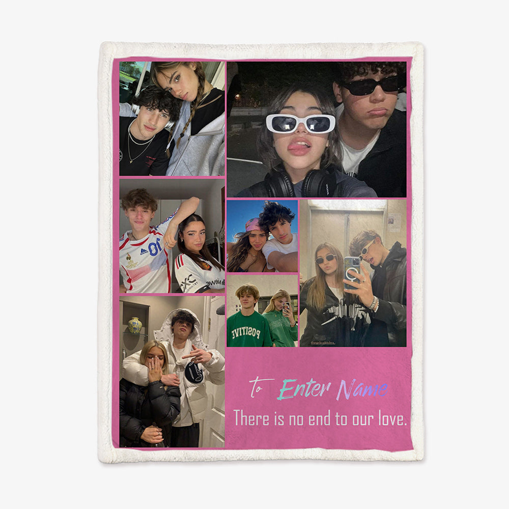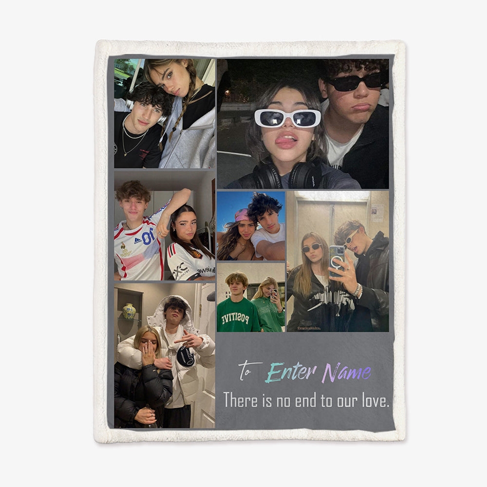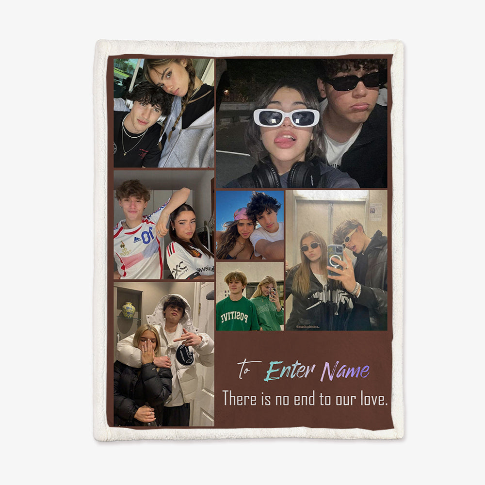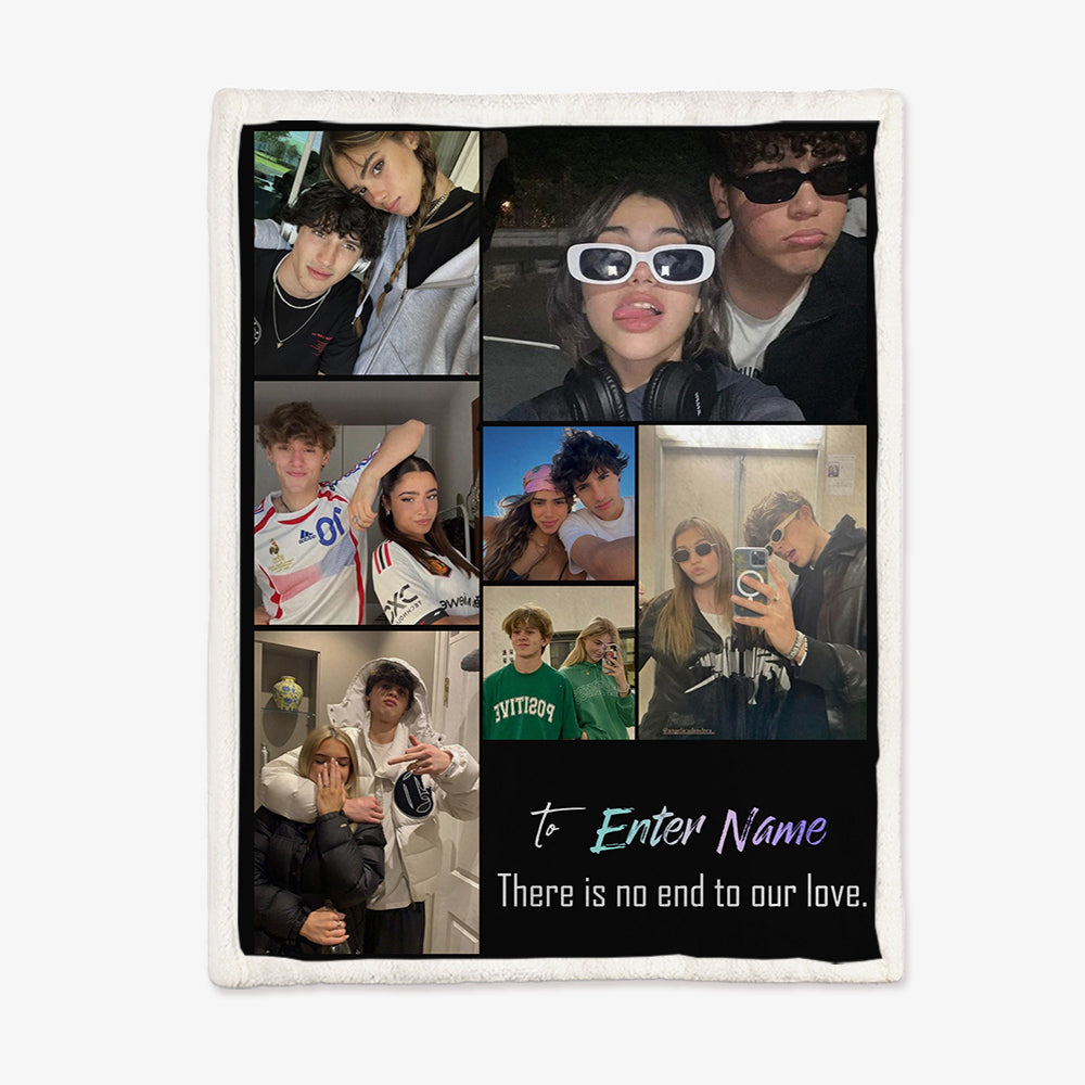 There is No End to Our Love Custom 7 Pictures Blanket Winter Sherpa Blanket Personalized Name Valentine's Day Gift
