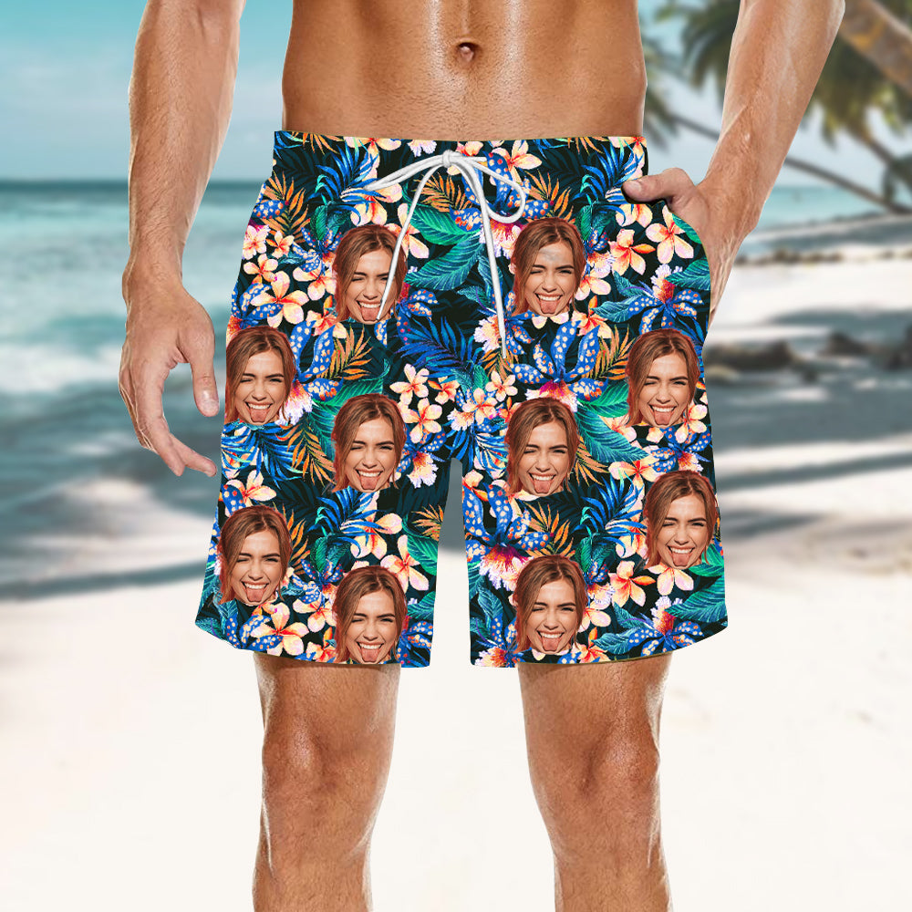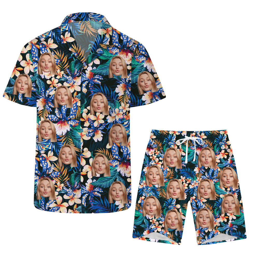 Tropical Flowers Men's Short Sleeve Tops Shirts & Beach Shorts Customized Gifts
