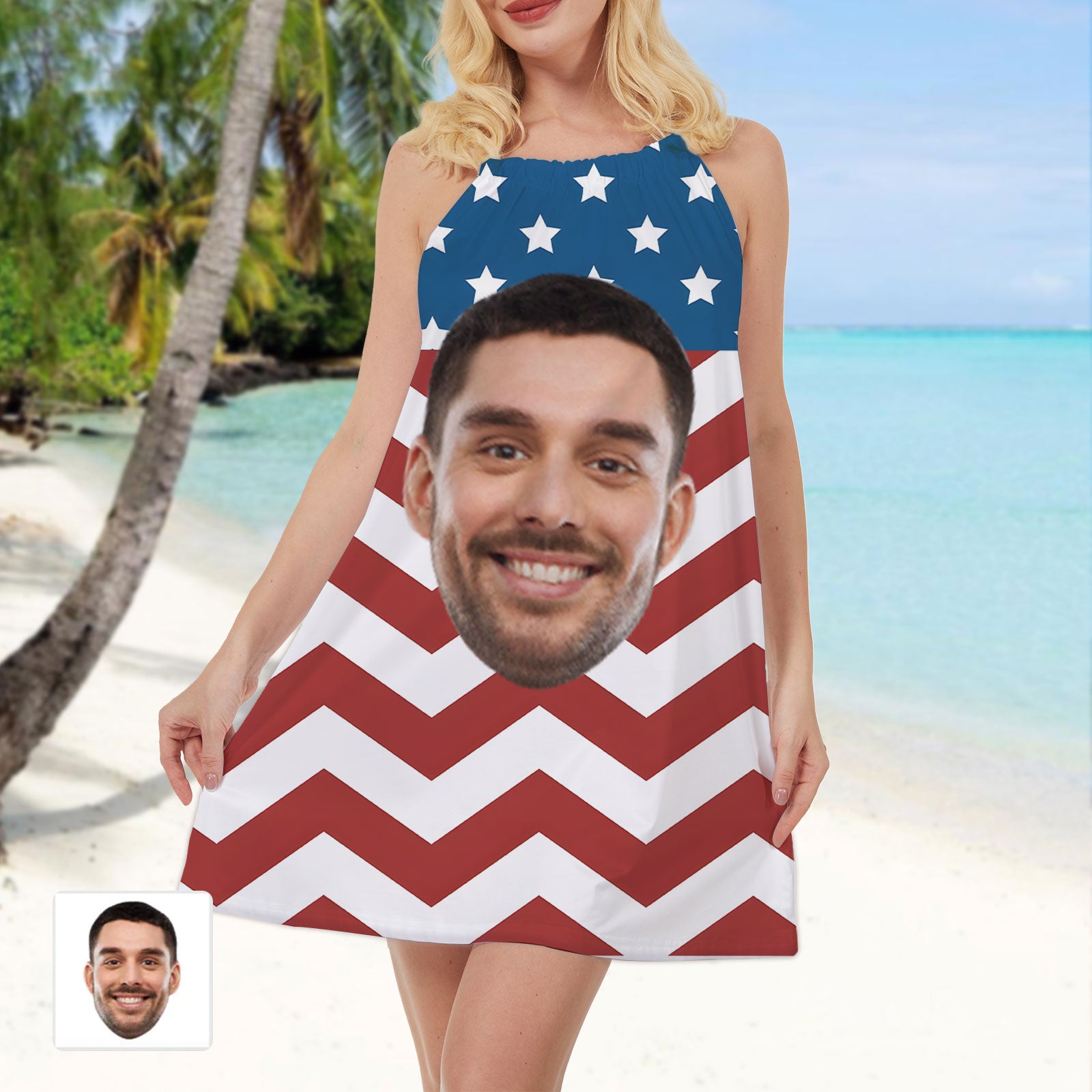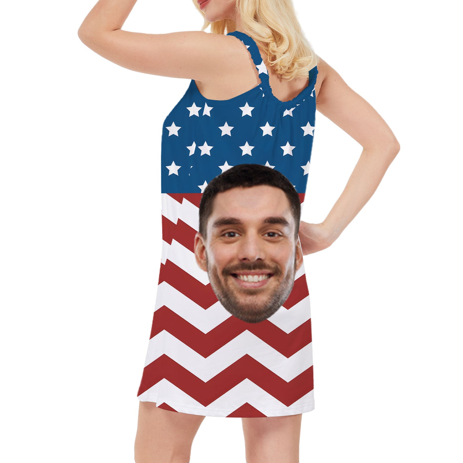 Unique Custom Face July 4th Dress Personalized American Flag Sundress