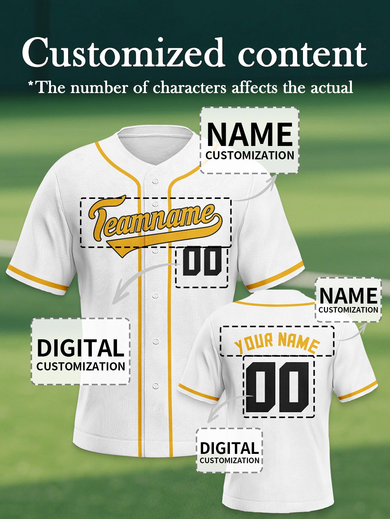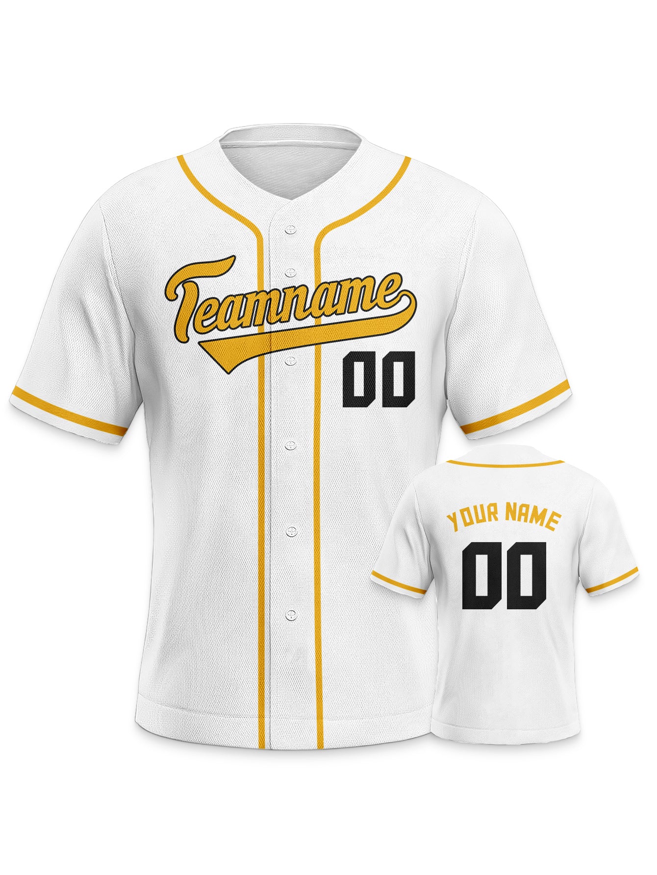 Universal White/Black/Yellow Baseball Top - Your Name & Number on Any Team Style