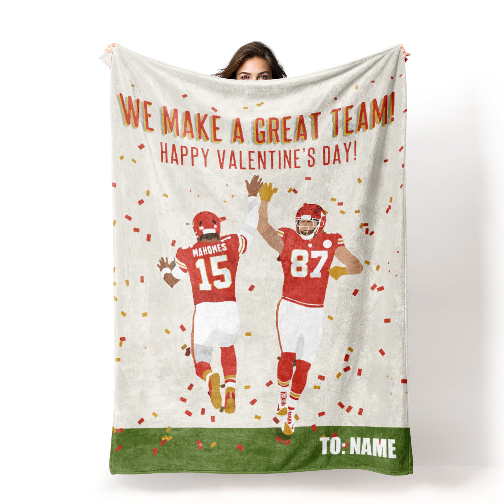 We Make a Great Team Mahomes & Kelce Personalized Blanket Kansas City Chiefs Fans Custom Name Blanket Gift