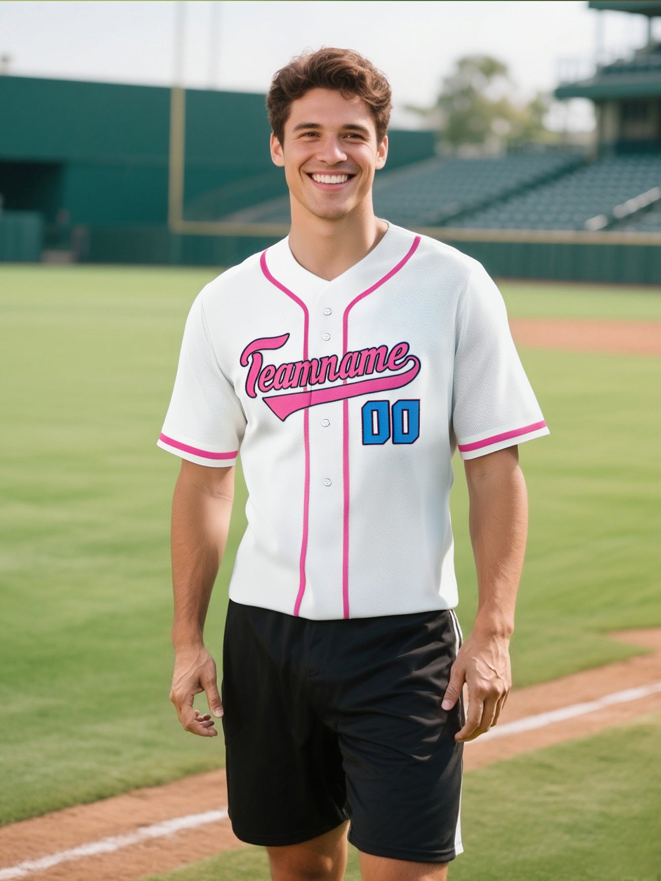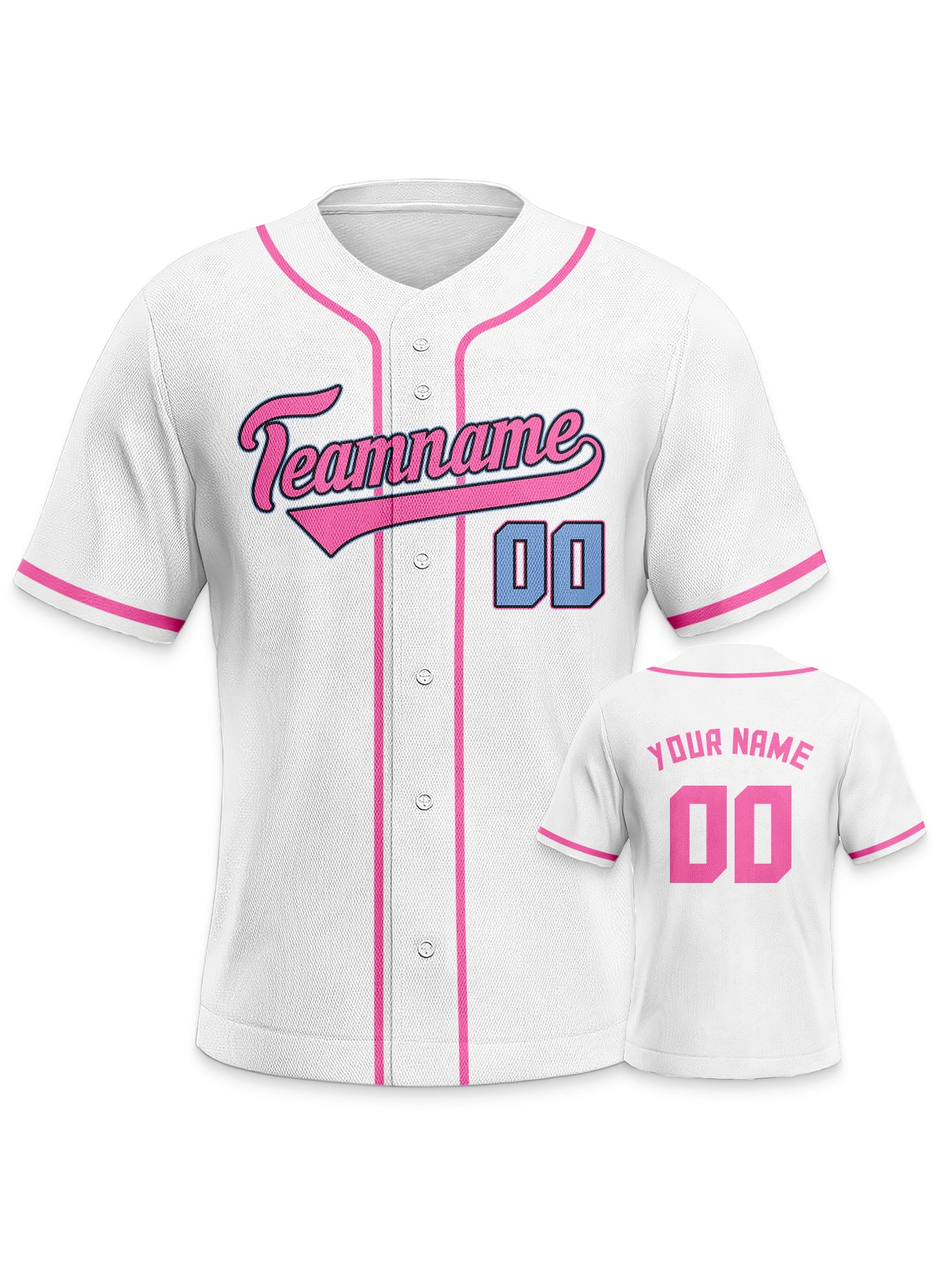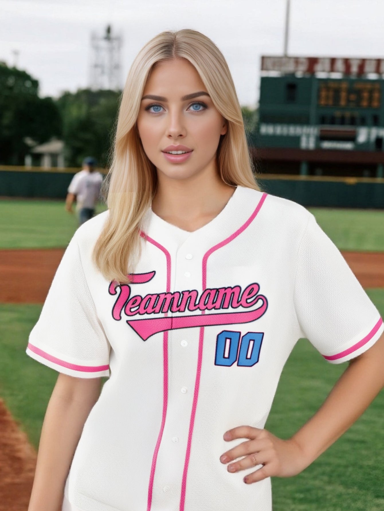 White/Navy/Pink Baseball Top - Miami Heat Inspired Design