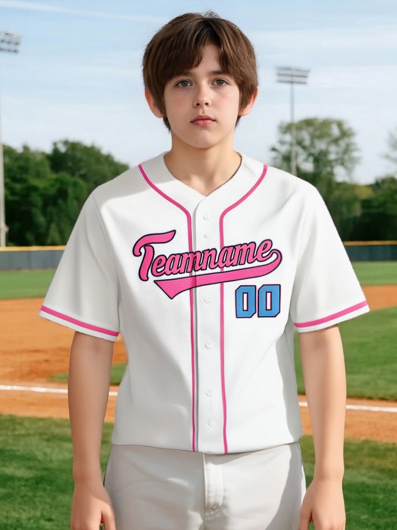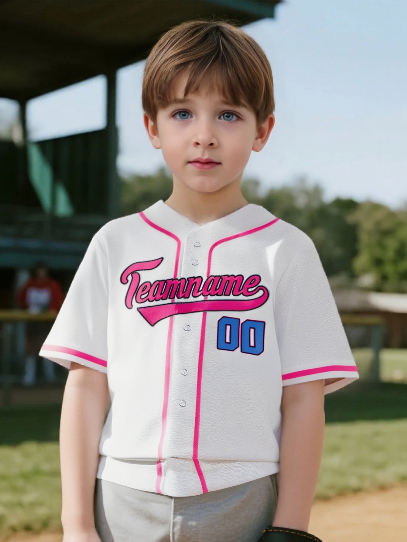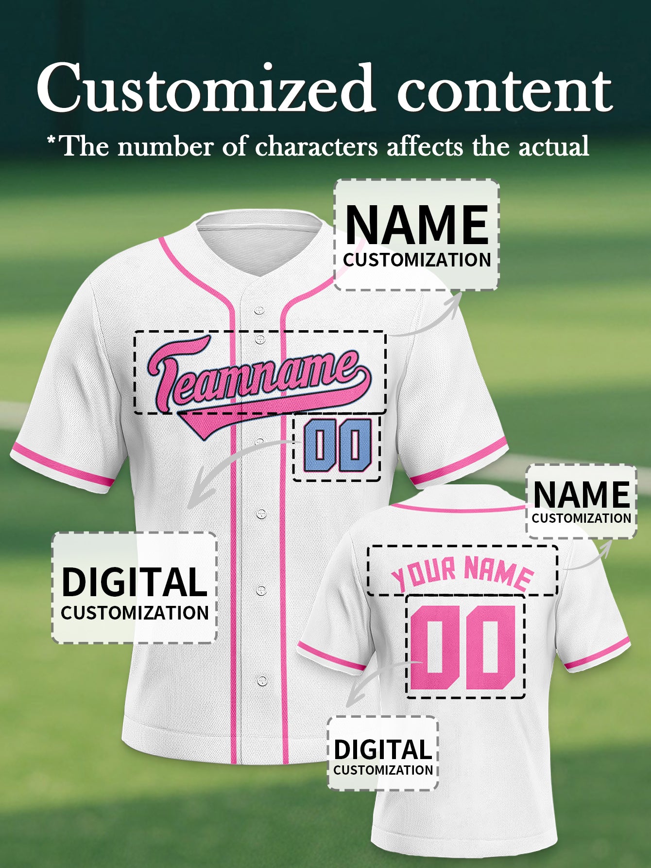 White/Navy/Pink Baseball Top - Miami Heat Inspired Design