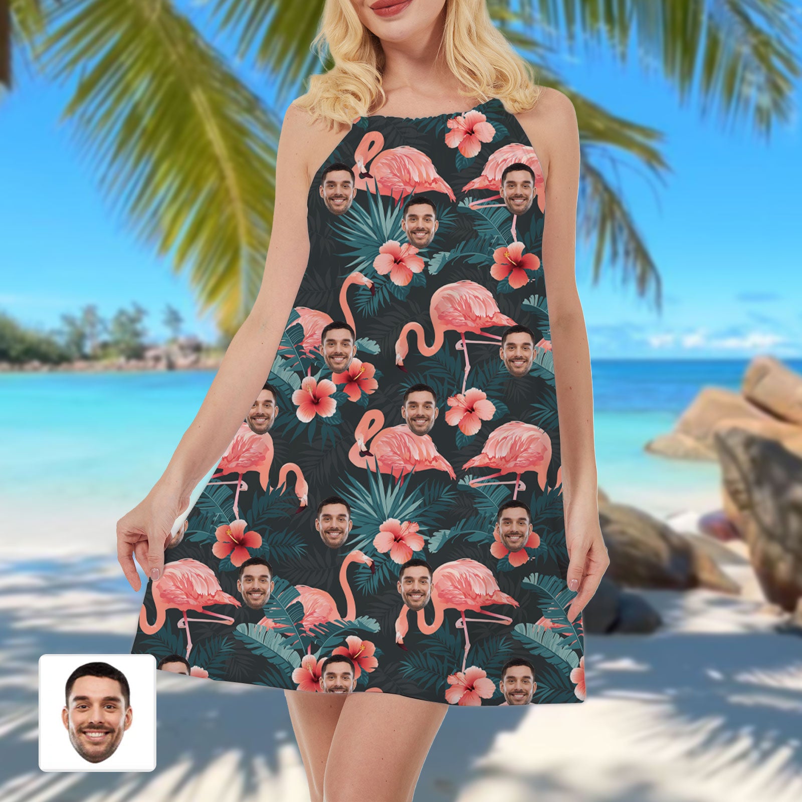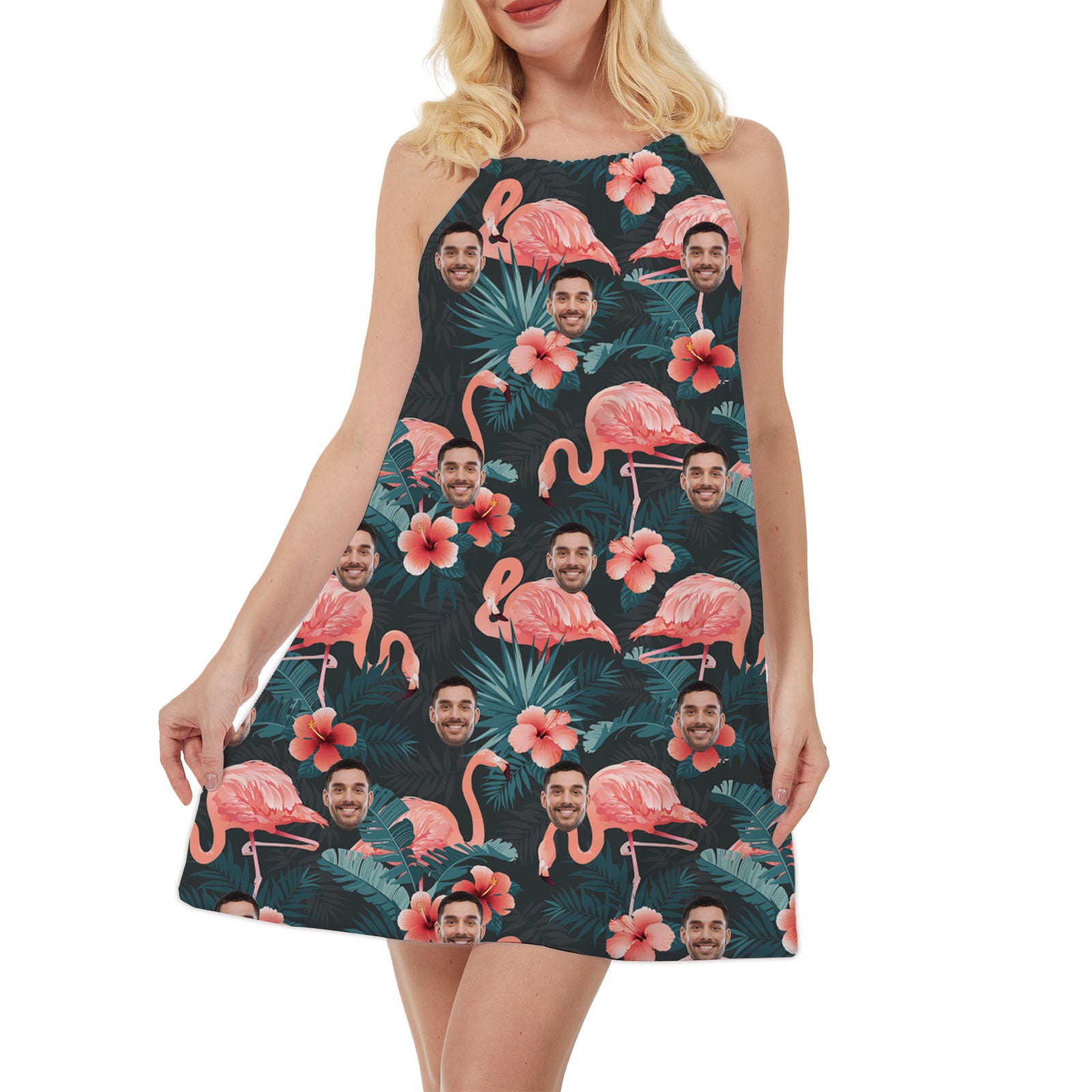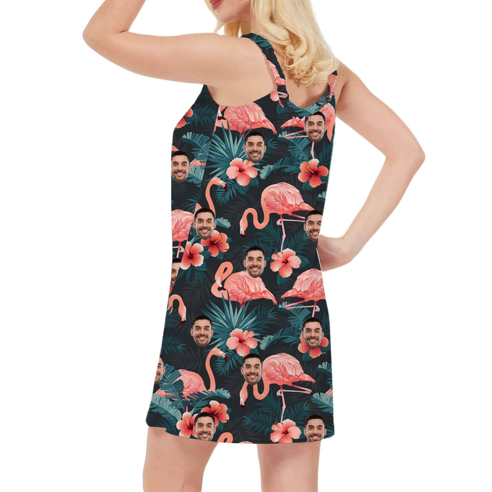 Women's Custom Face Sleeveless Dress Flamingo Print Personalized Summer Tops