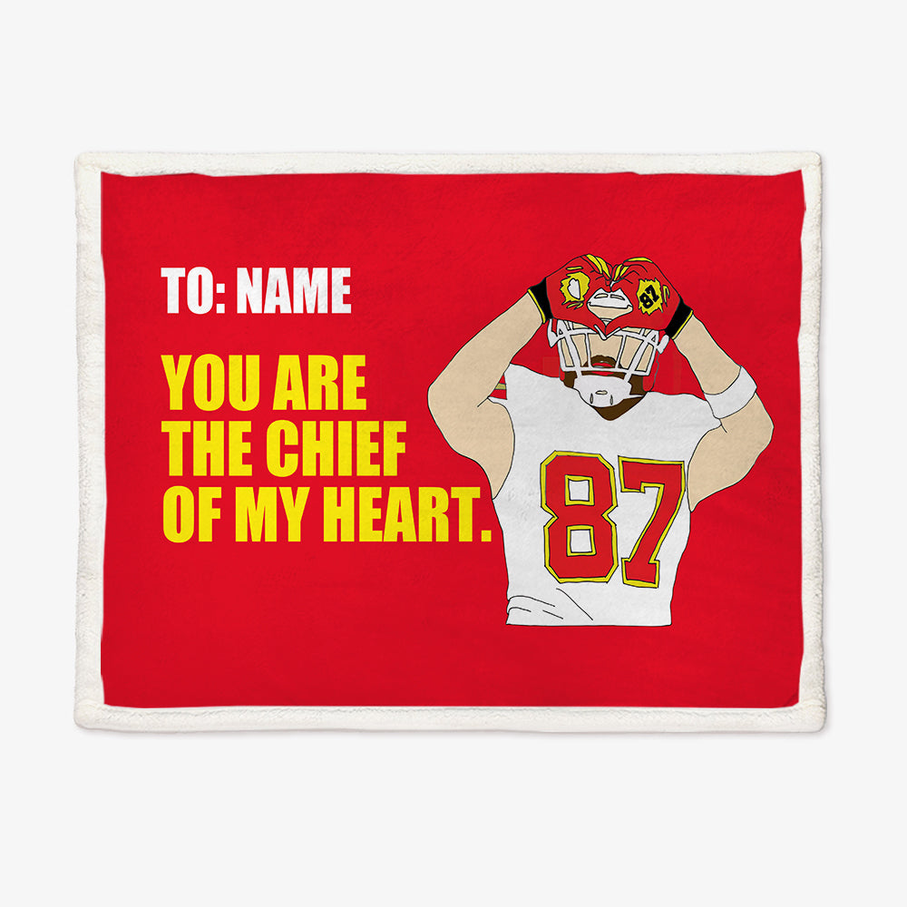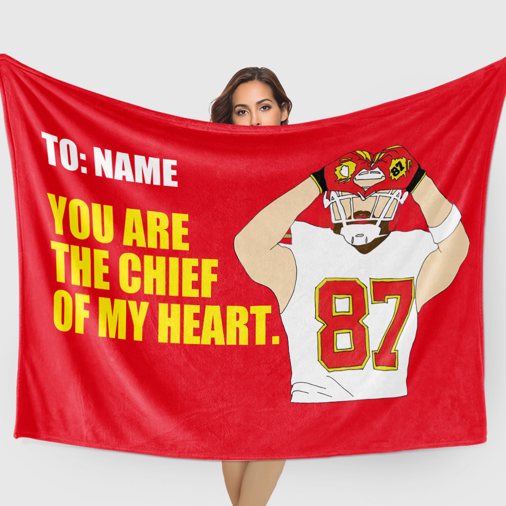 You Are The Chief Of My Heart Custom Name Couple Blanket Valentine's Day Gift for Kansas Football Fan Boyfriend