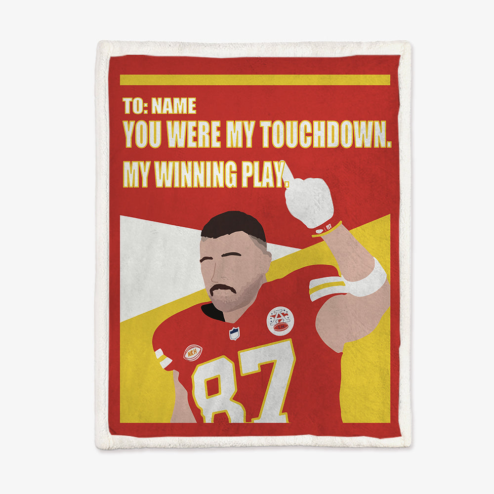 You Were My Touchdown My Winning Play Valentine's Day Personalized Blanket Customized Boyfriend/Girlfriend Name